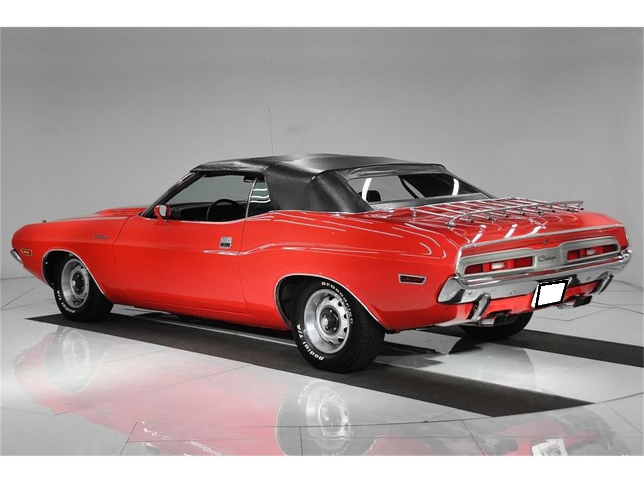 Very rare. Genuine red, 340 HP car full of options. Very solid car. Body is straight and fits really well. The paint is very glossy. Features include Sport hood with black stripe, hood mounted turn signals, racing mirrors, luggage rack, pop up chrome gas cap and Rallye wheels. Front bumper is very bright. The windshield looks new, door handles are excellent. The luggage rack is mint. Door jambs are nice, bottom of the doors are clean, has the original VIN number sticker and the weather strips are soft. Black convertible top is very good. Has correct grained material and glass window. Original plastic grained side panels are in excellent shape. Has Legendary upholstery. Console and instrument area are very nice, not broken or damaged. Has original slap stick shifter. Modern stereo, h.d. 6x9 speakers behind the seat. Has tachometer mounted below the dash. Visors, mirror, seat belts vents are very nice. 340 high performance motor. Upgraded aluminum intake, Holley Street Avenger carb and headers. Everything is neat and orderly. All the components on the firewall are nice, wiper motor looks new, has cowl seal and vents. The factory air conditioning system is entirely complete. Alternator looks new. Has proper radiator shroud, fan and big radiator. Options also include power steering and power brakes. The metal looks really nice and clean, painted a gloss red. Solid metal trunk compartment. Includes a matching rally wheel and BFGoodrich tire for a spare. Has the complete jack assembly and rubber mat. Weatherstrip is excellent. Very solid, clean frame rails. Has disc brakes in front. Custom 2 1/2 inch exhaust system. Has crossover pipe and correct exhaust tips. Has 727 Torqueflite auto trans and 8 3/4 sure grip rear with 3.55 gears. This is a rare Challenger convertible that is full of factory options!