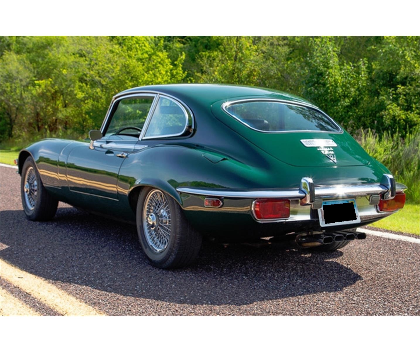 1971 Jaguar E-Type Coupe Series III 2+2 V12 4-speed. 44,588 actual original miles. Correct British Racing Green (code 8461) exterior. Black Connolly leather interior and Wilton wool carpets. Power steering, vented brake rotors and factory air conditioning that blows cold Factory wire wheels.