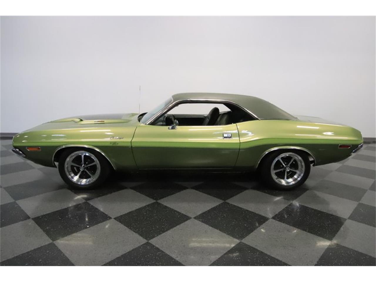 1970 Dodge Challenger R/T 440 numbers-matching V8 440 Magnum engine bay filled with big block Mopar power, original three-speed automatic transmission. Correct AM/FM radio is still cranking out tunes (there is a Bluetooth conversion available.). Three-spoke sports steering wheel (w/power steering.).