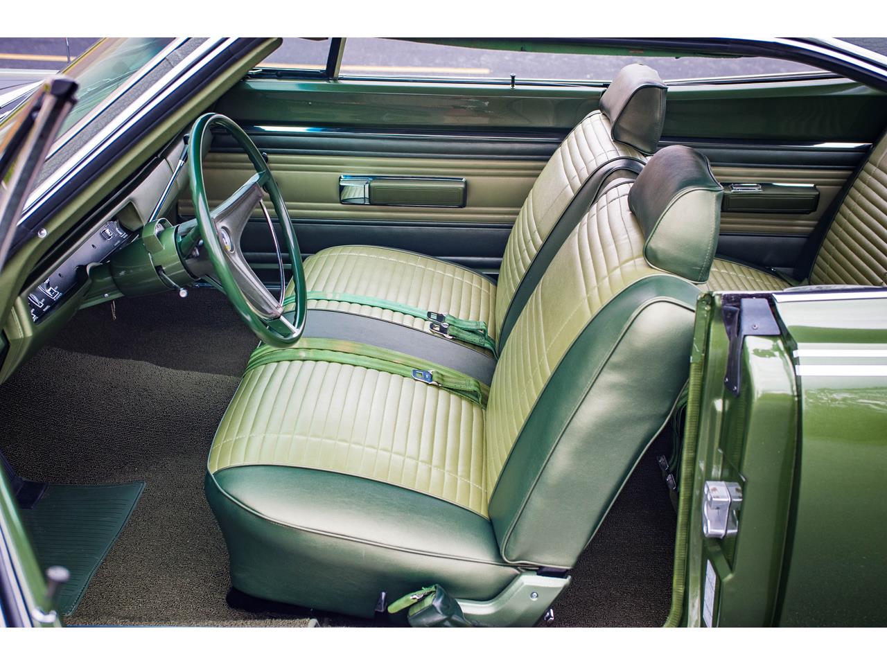 1969 Plymouth Road Runner.This 69 Road Runner is ready to get out on the open road and stretch its legs.The luscious green leather seats pair perfectly with green dash and carpet and add a great mood to the inside of the car.