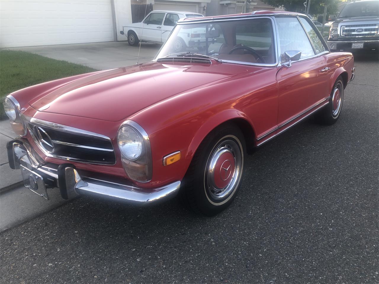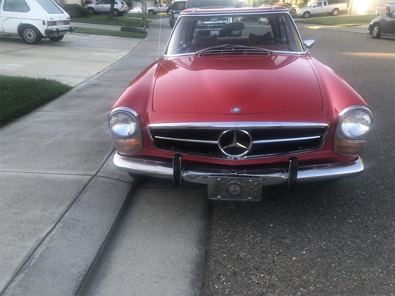 This stunning 1969 Mercedes Benz 280sl is excellent running condition. The car wa freshly painted in Signal Red by a professional classic car paint shop. Major service and tuning. Flush fuel tank, new battery, new fuel line, fuel pump, new exhaust system. Replaced rear exhaust manifold. New transmission. New shifter bushing. New carpets. New& door panels, kick panels, rechromed, new tires.
