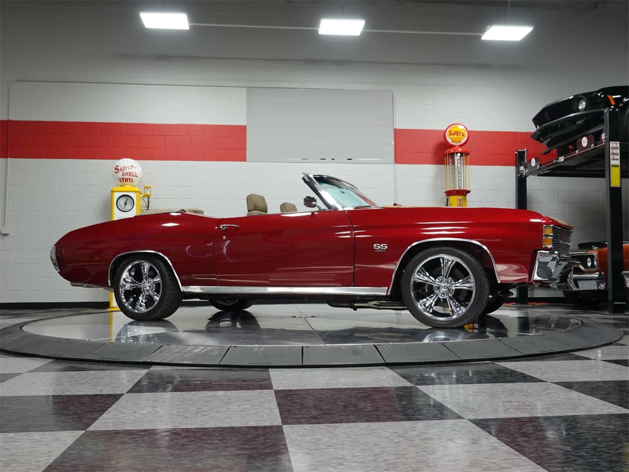 This 1971 Chevelle SS Convertible has that great body shape and of course the big block 454. It also rocks the SS stripes. It s been updated and upgraded to go toe to toe with any car, SS454 or otherwise. The engine features aluminum GM Performance heads, and inhales through a cowl induction hood, to a big 750 Holley and Edelbrock intake.