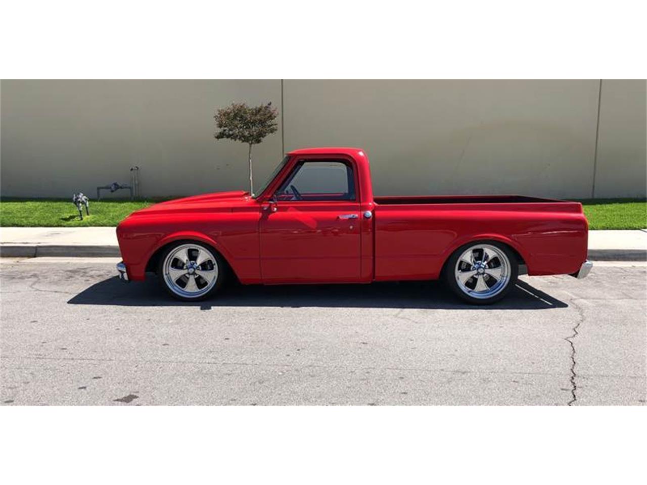 1969 C 10 Short Bed with 1968 front end 350 crate motor with added new serpentine system, new carburetor, new headers, Wilwood master cylinder, new aluminum radiator, new inner fenders, tucked hoses and battery so you can not see them, and new air filter and powered coated valve covers. Rebuilt 700R4 rebuilt trans with 400 miles Wilwood brakes front and rear 12 bolt 373 posi rear end Ridetech and fox suspension with rear air bags brand new leather bench seat, Interior, carpet and Cab insulation power windows Tilt Column Side mirrors with turn signal light in them 20 inch American racing wheels.