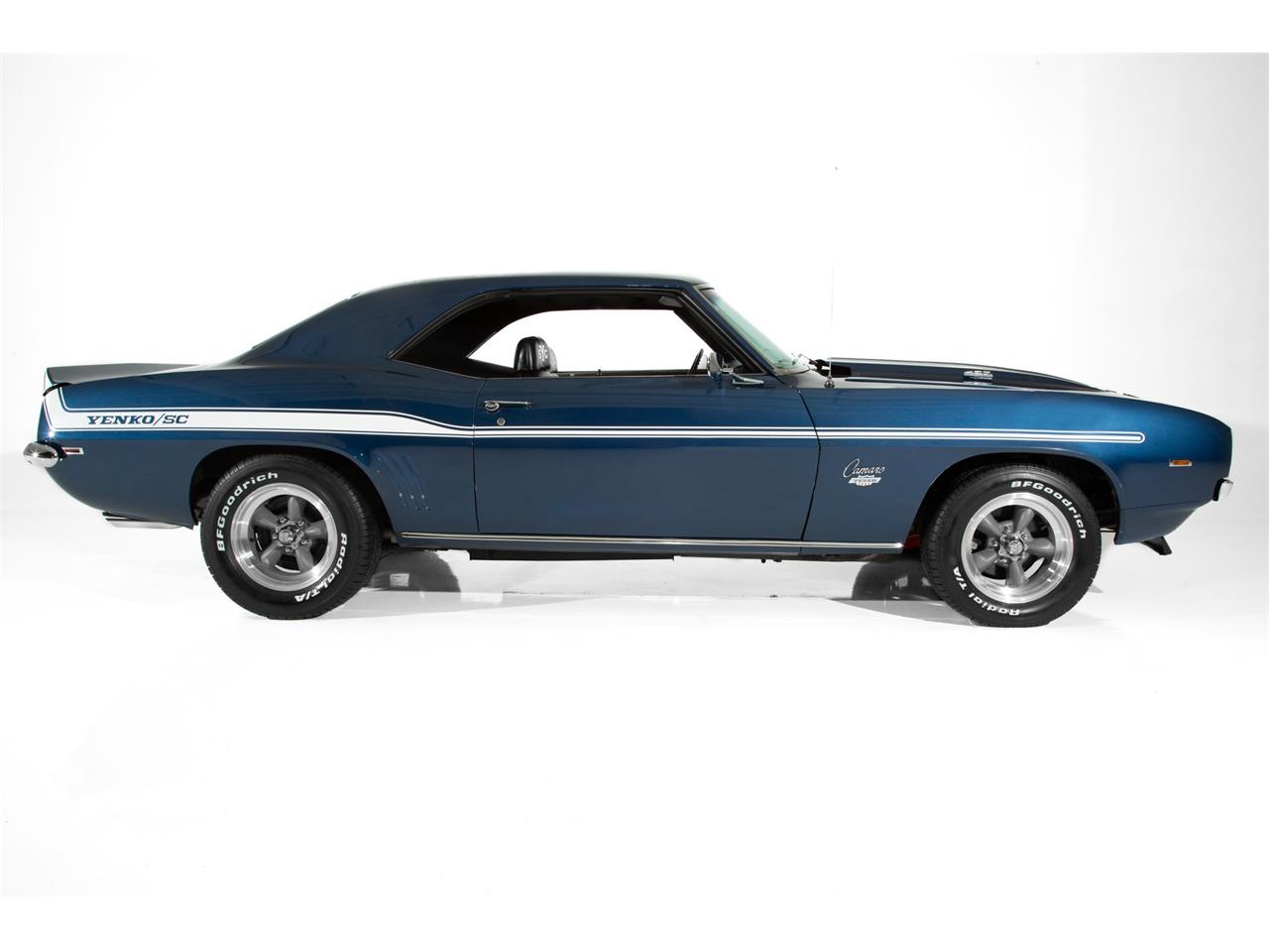 Dark Metallic Blue 1969 Chevrolet Camaro with Yenko SC stripe package and is backed up by a fire breathing 427 c.i. big block engine, overdrive automatic transmission and a 12 bolt rear with a tire scorching 3:73 gear and positraction. Great equipment with power steering, power front disc brakes and vintage AC. All the goodies like a cowl hood, front spoiler, rear spoiler and Yenko badges.
