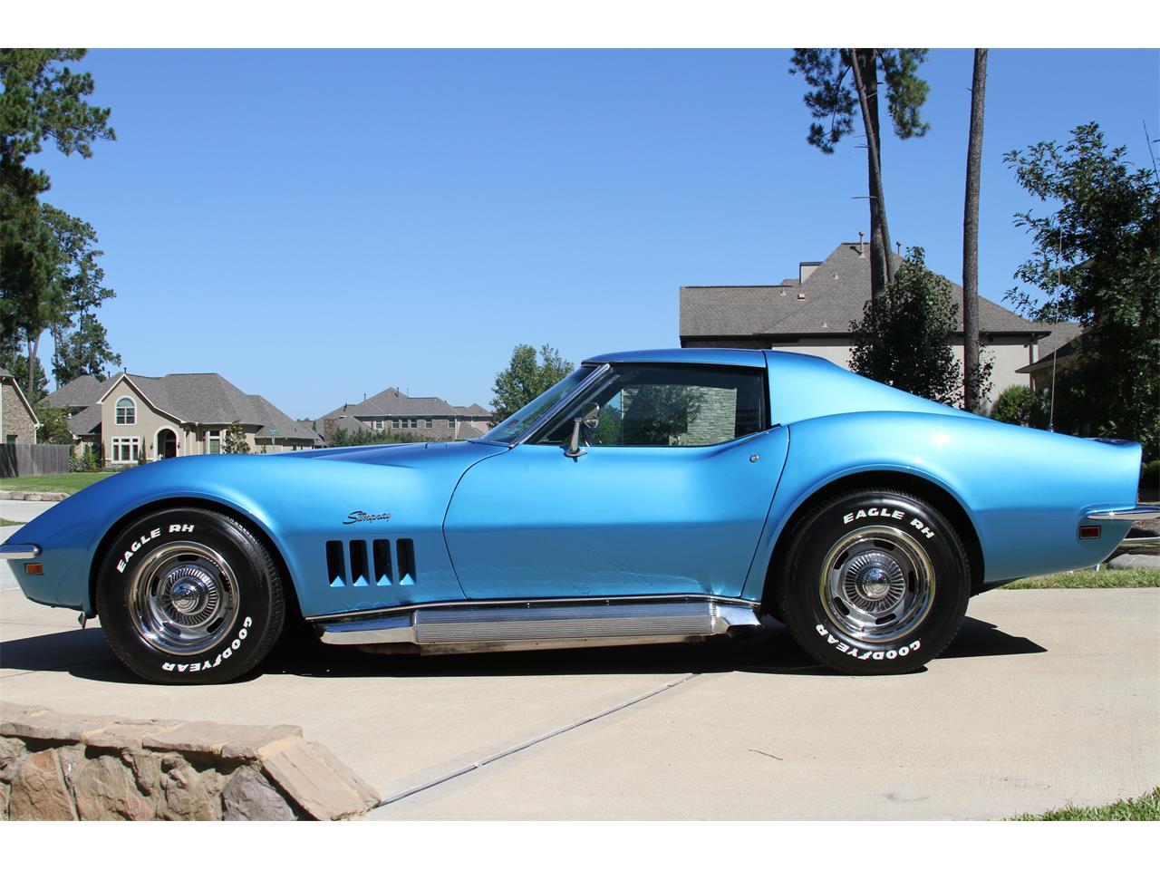 427 400HP TriPower, L68 option, correct date code. 4 speed, factory side exhaust, factory AC, power steering, power brakes, AM FM CD, black interior, powder coated rally wheels with white lettered Goodyear radials. Motor completely rebuilt and all major engine components alternator, starter, compressor, master cylinder, distributor ignition converted to electronic MSD updated in early 2000s. A rare fully serviced big block with AC and Ttops.