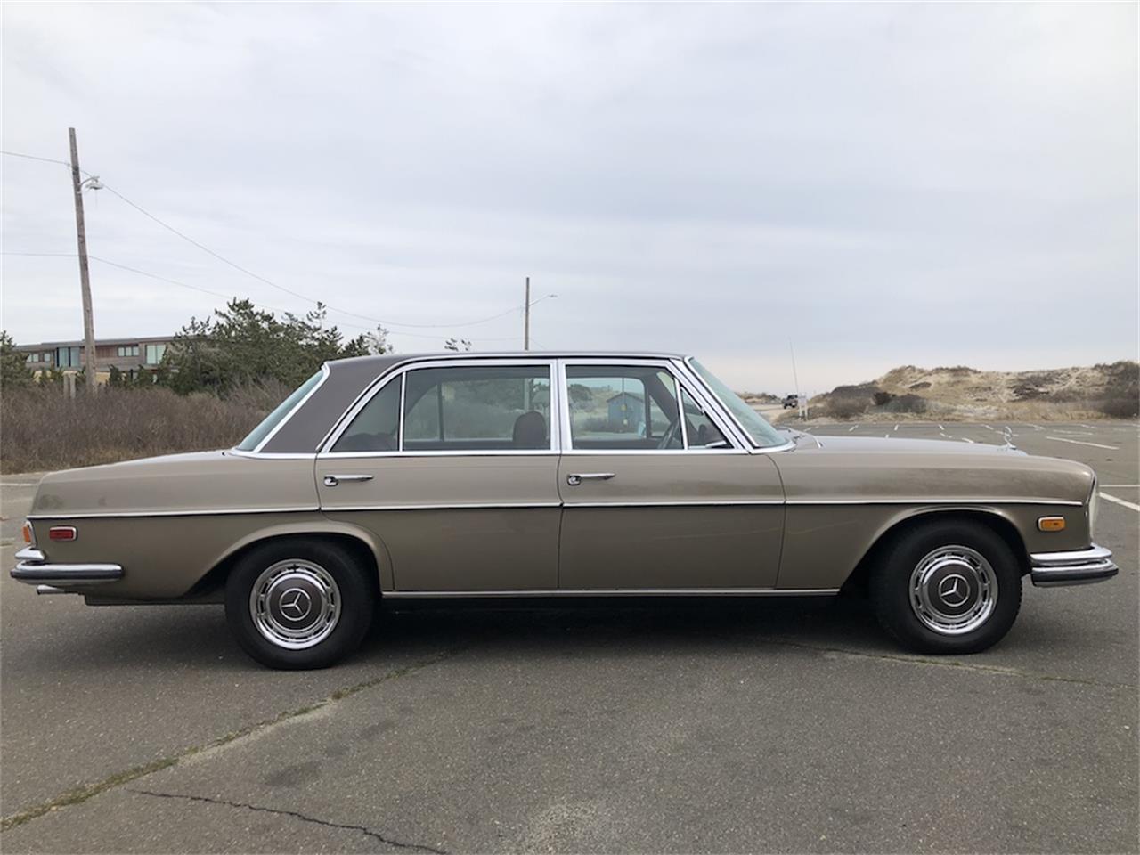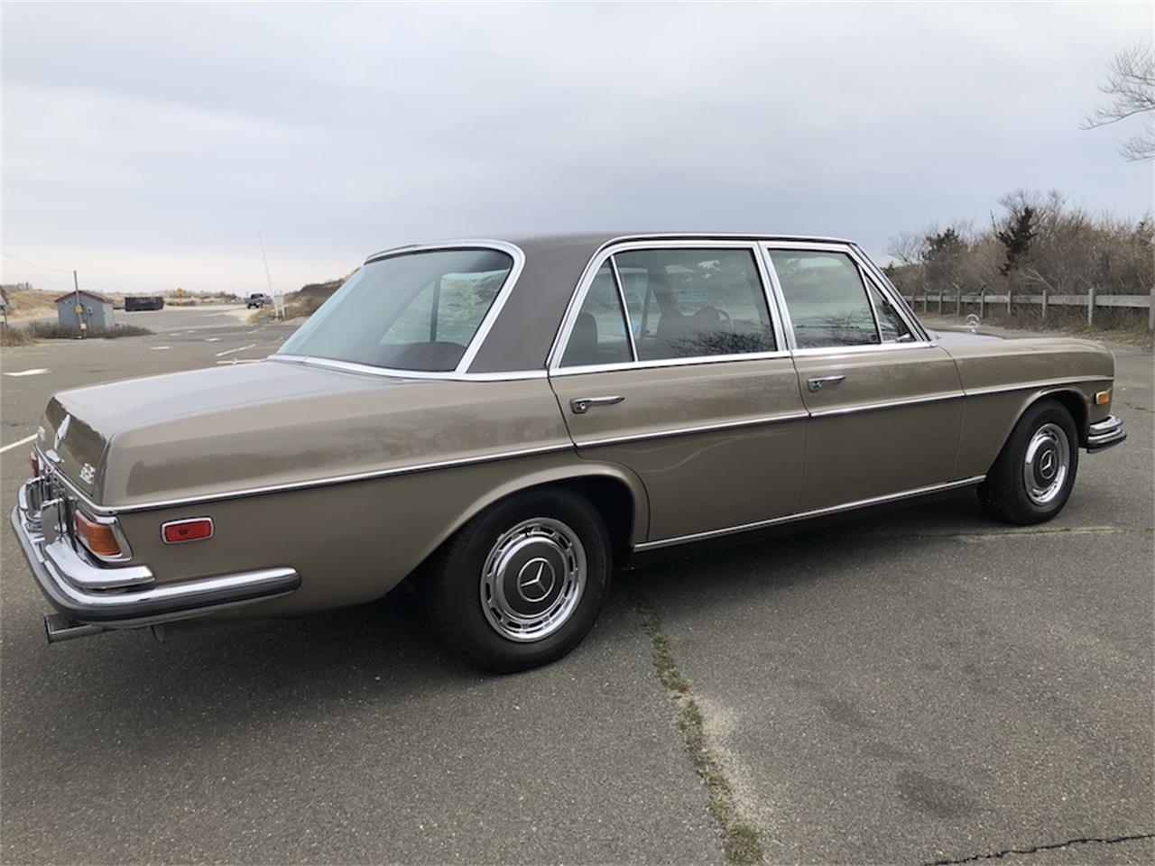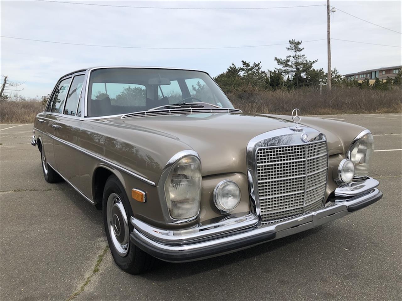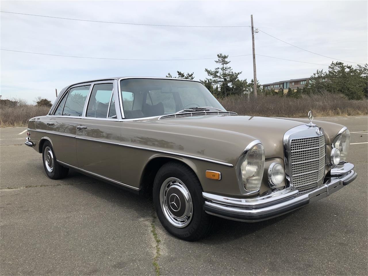1971 Mercedes-Benz 300SEL. The M100 Engine is a 6.3 liter V8 with Bosch fuel injection, and it delivers 300 HP through Mercedes 4-speed automatic gearbox, Features include air suspension, ventilated disc brakes on all four wheels, power windows, central locking and power steering, air conditioning, power sunroof, and rear seat reading lamps. The performance is 0-62 mph in 6.3 seconds, 0-100 mph in 14.6 seconds, Standing 1/4 mile in 14.2 seconds. The top speed is in excess of 142 mph.
