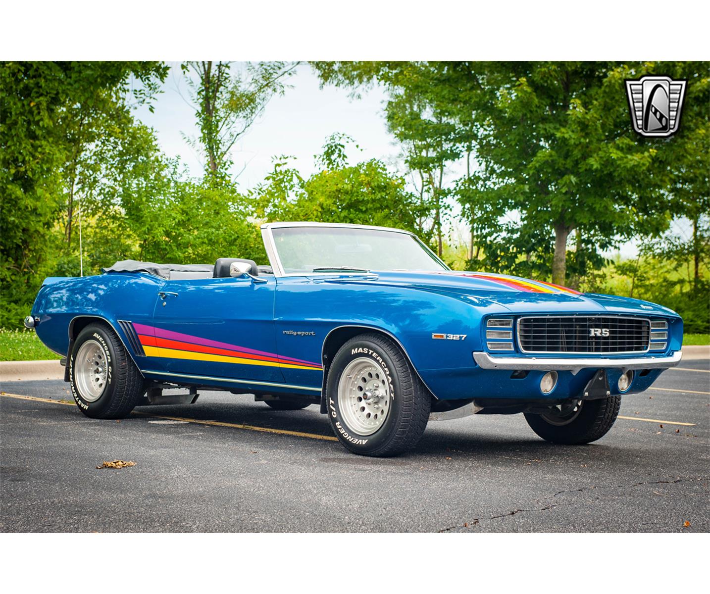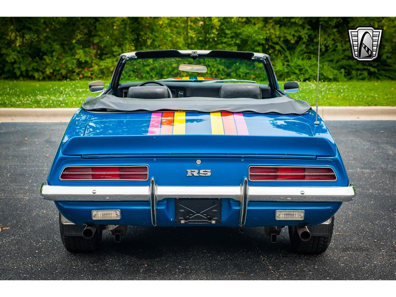 The exterior is painted blue accented by the painted stripes on the hood, trunk, and sides. The interior features black vinyl interior with buckets up front and a bench seat in the back. This Camaro is not short of muscle thanks to the cammed 360 cubic inch small block V8. It is paired with a 4 speed on the floor. It has a 12 bolt rear end with great highway rear gears for 70mph cruising. Headers with high flow exhaust create an addicting muscle car sound. Disc brakes up front and drum brakes in the back. This Camaro is riding on 15" American Racing Wheels. The dash configuration is clean and includes original gauges.
