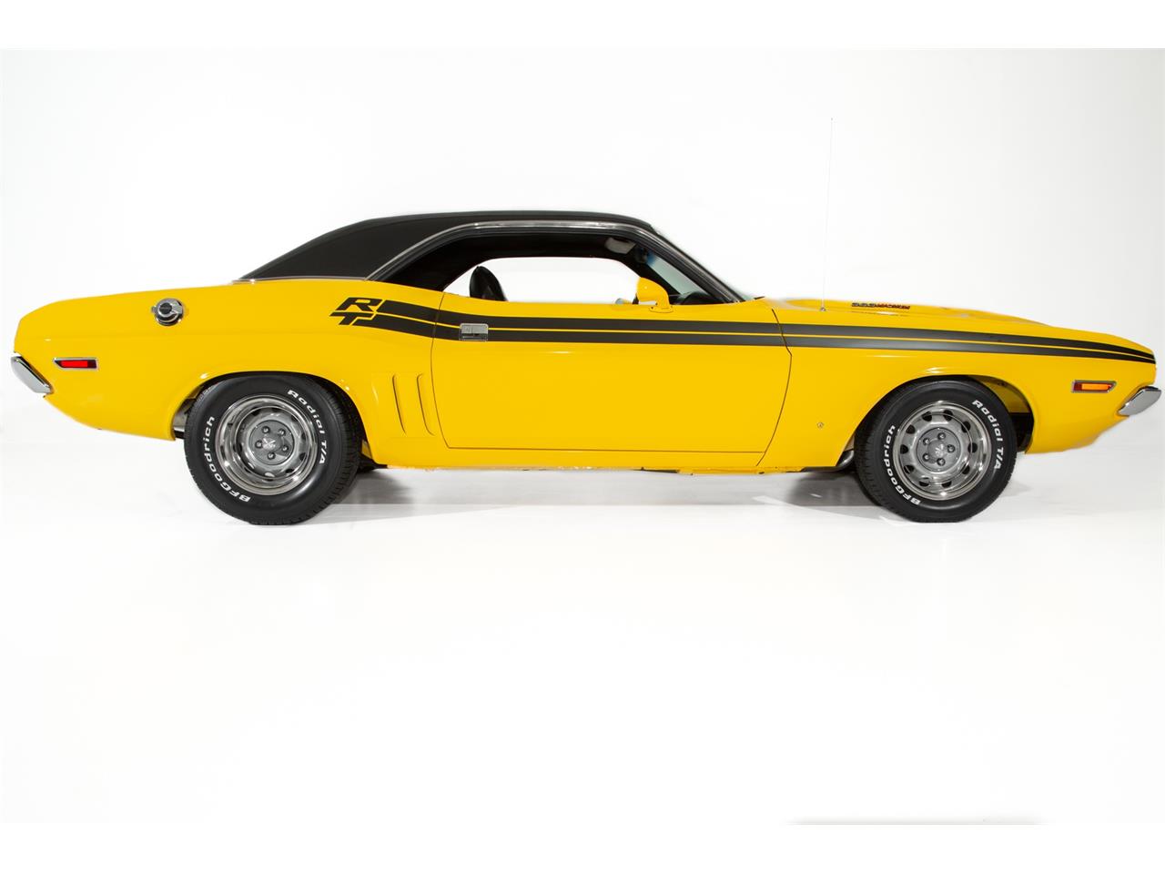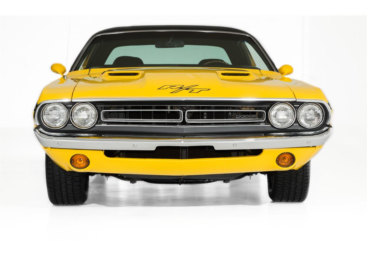 1971 Dodge Challenger RT with a comprehensive rotisserie restoration done in high impact yellow. Real Challenger RT pedigree car with original broadcast sheet, black bucket seats, console, automatic 727 with slapstick shifter and rally tach and gauges. The show quality engine compartment showcases a date code correct 383 big block, freshly rebuilt to specs with very few miles on it. With builder specs, power steering, power front disc brakes, power bulge hood with the correct air cleaner accessories, this car is a true find. The structurally beautiful body is incredible and painted professionally from the top to the rotisserie restored floors which are intact from bumper to bumper with factory pinch welds.