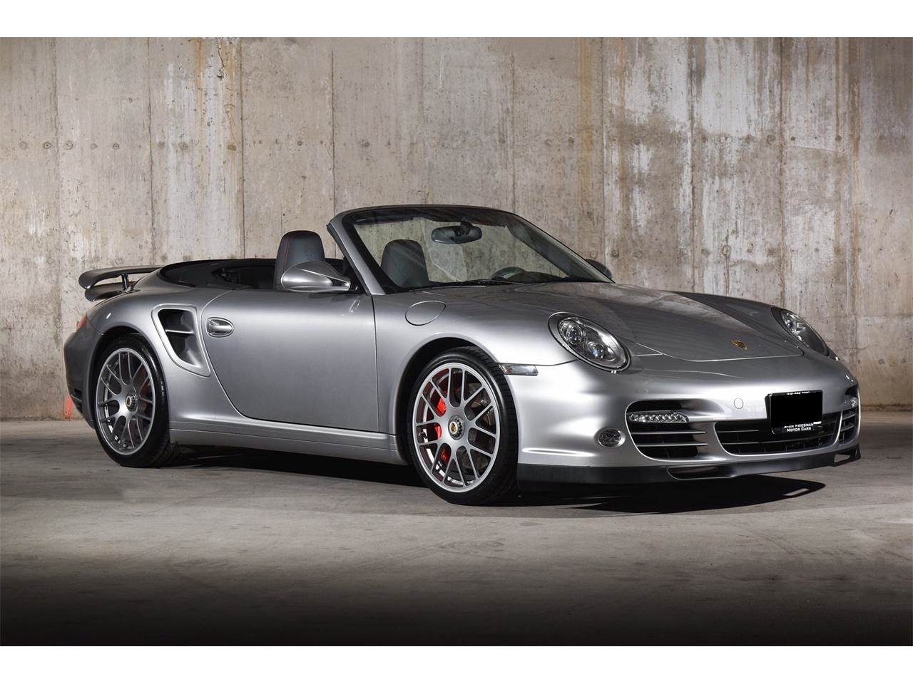 2011 Porsche 911 Turbo Cabriolet. Finished In The Alluring Carrera GT-Derived GT Silver. Out Of The 997.2 Turbo's Model Years From 2010 To 2013, Only 1,488 N.A-Market Examples Were Produced, With Only 488 Having Been Specified With A Manual - The 997.2 Turbo Is The Last Of The Manual 911 Turbos - Only 54 U.S Market Cabriolets Were Optioned With A Manual For The 2011 Model Year With This Unit Being Only 1 Of 3 N.A-Market Manual Cabriolets To Be Featured in GT Silver With An Interior Shown In Black Full Leather - Optioned With Coved Equipment And Tasteful Specficications Such As The Sport Chrono Package, Limit Slip Rear Different Lock, An Alcantara Wrapped Steering-Wheel, Red-Stitching, A Sport Shifter, Cooled Front Seats, And The RS Spyder Wheels Completed In Silver