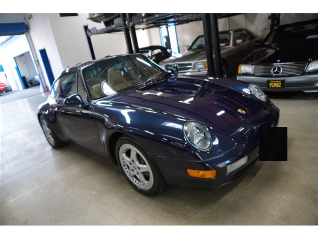 1997 911 993 rare Targa coupe with six speed manual transmission and boating the 3.6L air cooled engine in the beautiful and highly desirable color combination of special original factory order Ocean Blue Metallic L3AZ exterior color paint with striking and also special factory ordered Cashmere amp Black leather.