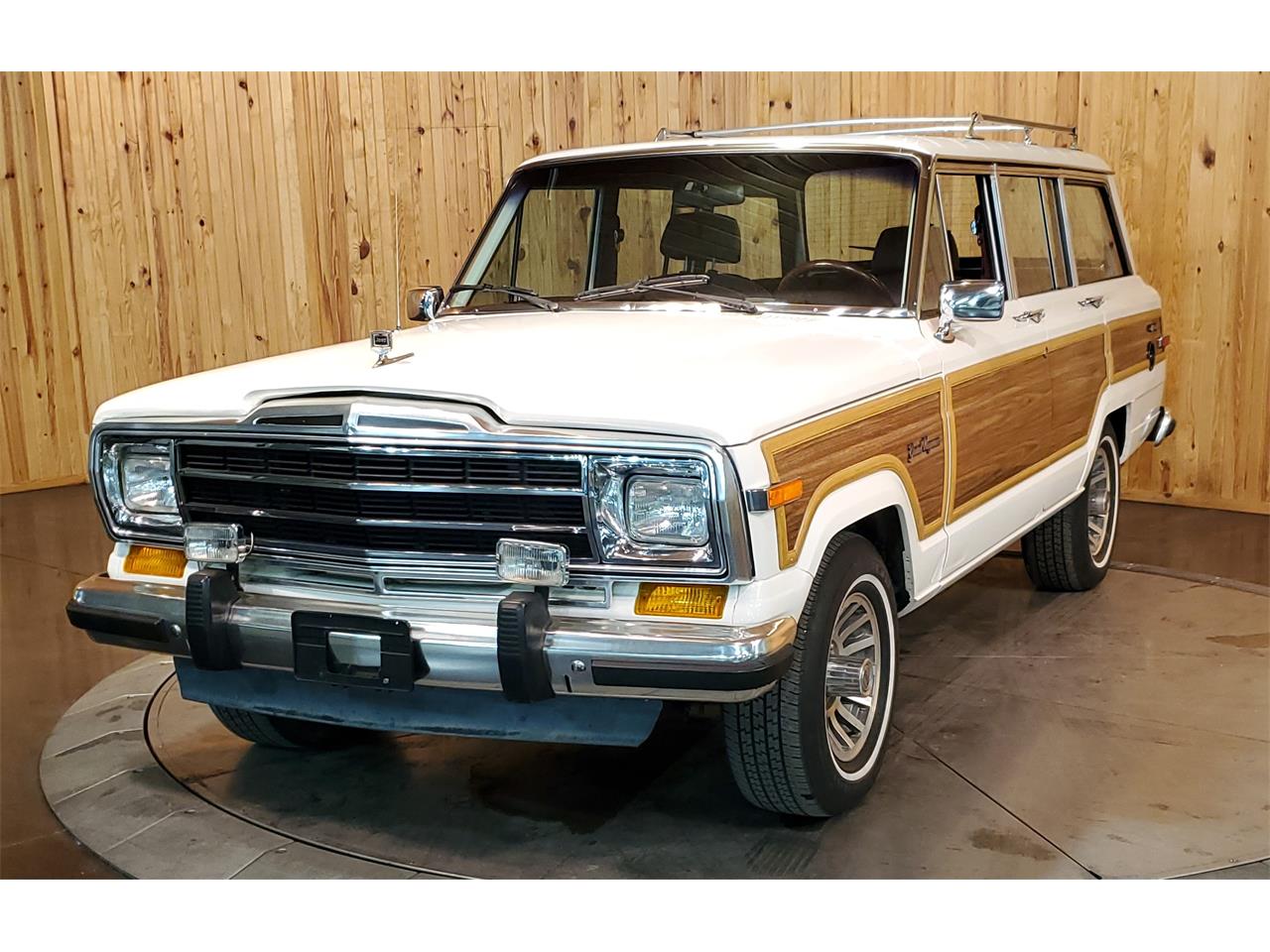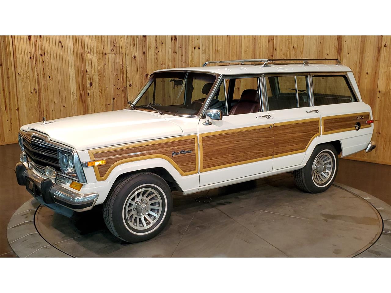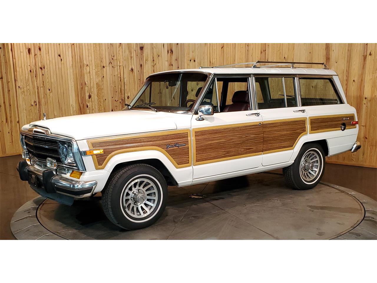 This 1990 Jeep Grand Wagoneer is a great example of the vehicle that created the sport utility vehicle class! Powered by the powerful 5.9L 360 cubic inch V8, Chrysler 727 three-speed automatic transmission. Both front and rear axles are Dana 44’s. Power steering, power disc brakes, power windows and power door locks are present as well as factory air conditioning . Finished in Bright White, the paint still has a good shine and the brightwork also shines well. The Cordovan leather interior with cloth inserts is in exceptional shape and the matching carpet is also very nice. The factory turbine-style wheels are wrapped with Michelin tires. The odometer shows just over 64,000 miles.
