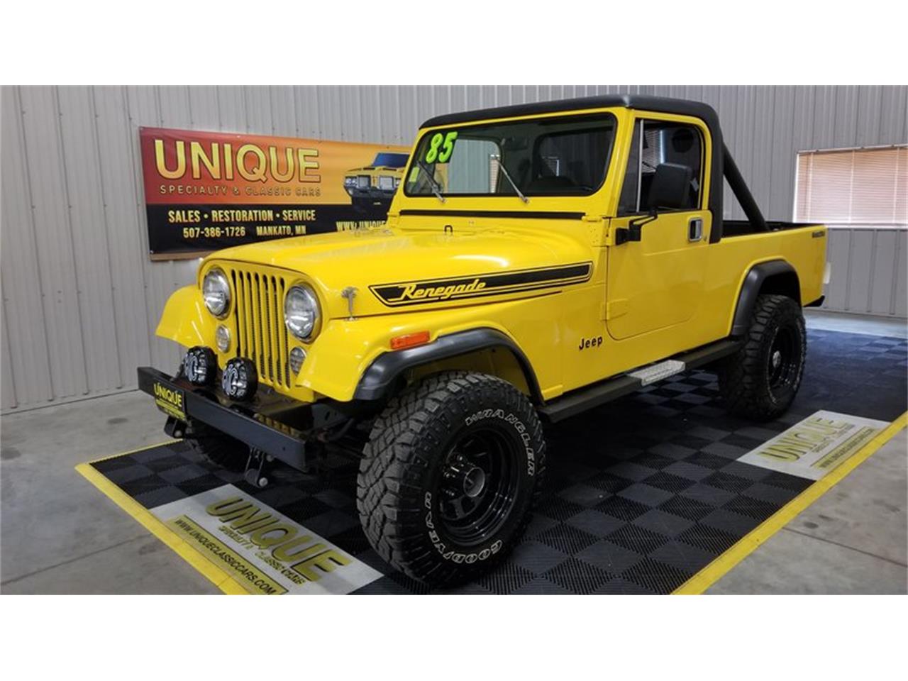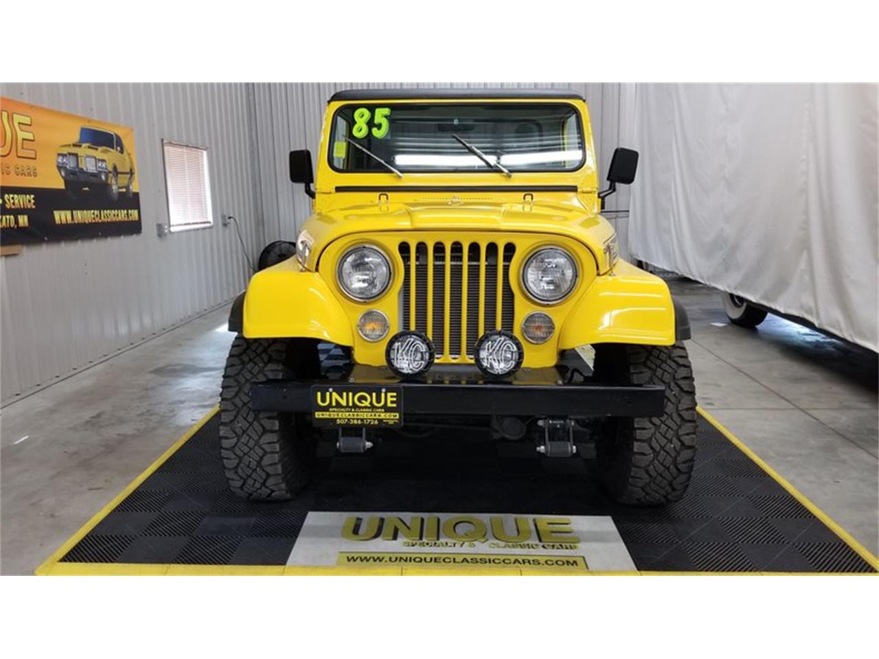 1985 Jeep CJ-8 Scrambler in yellow paint with black accents.