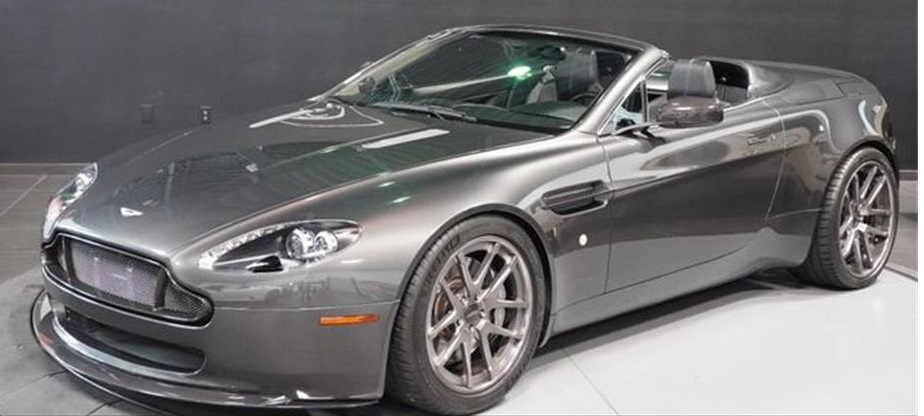 This 2009 Aston Martin Vantage 2dr Volante convertible Meteorite Silver with a grey Leather interior.