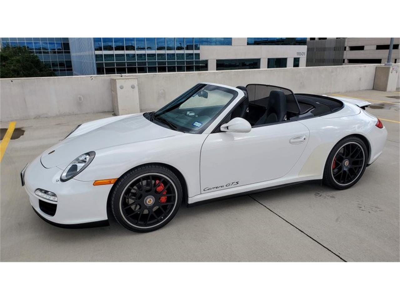 2011 Porsche 911 Carrera GTS Cabriolet, Carrera White over full black leather. It has 42,255 miles and is powered by 3.8 litre 6 cylinder with a factory rated 408 HP and 310 lb-ft torque through the Porsche PDK. The front seats are power, heated, and ventilated and it has the Sports Chrono Package Plus, Bose Surround Sound, XM Radio, and the Extended Navigation Mod PCM 3.0, and the three spoke multi-function steering wheel.