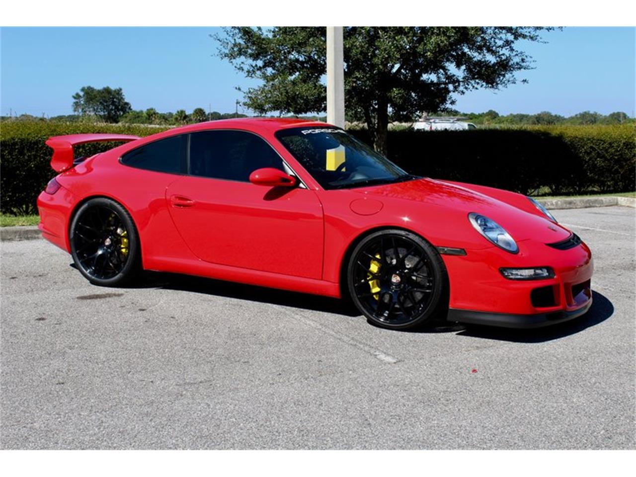 2008 Porsche GT 3, Red exterior with black wheels and details, 2 tone red black interior with leather and alcantara bucket seats. 409hp, 8400rpm redline and a 6 speed manual make this car a true race car on the road, PASM Porsche Active Suspension Management, Porsche Stability Management PSM Anti lock braking system ABS Porsche side impact protection system POSIP Traction control.