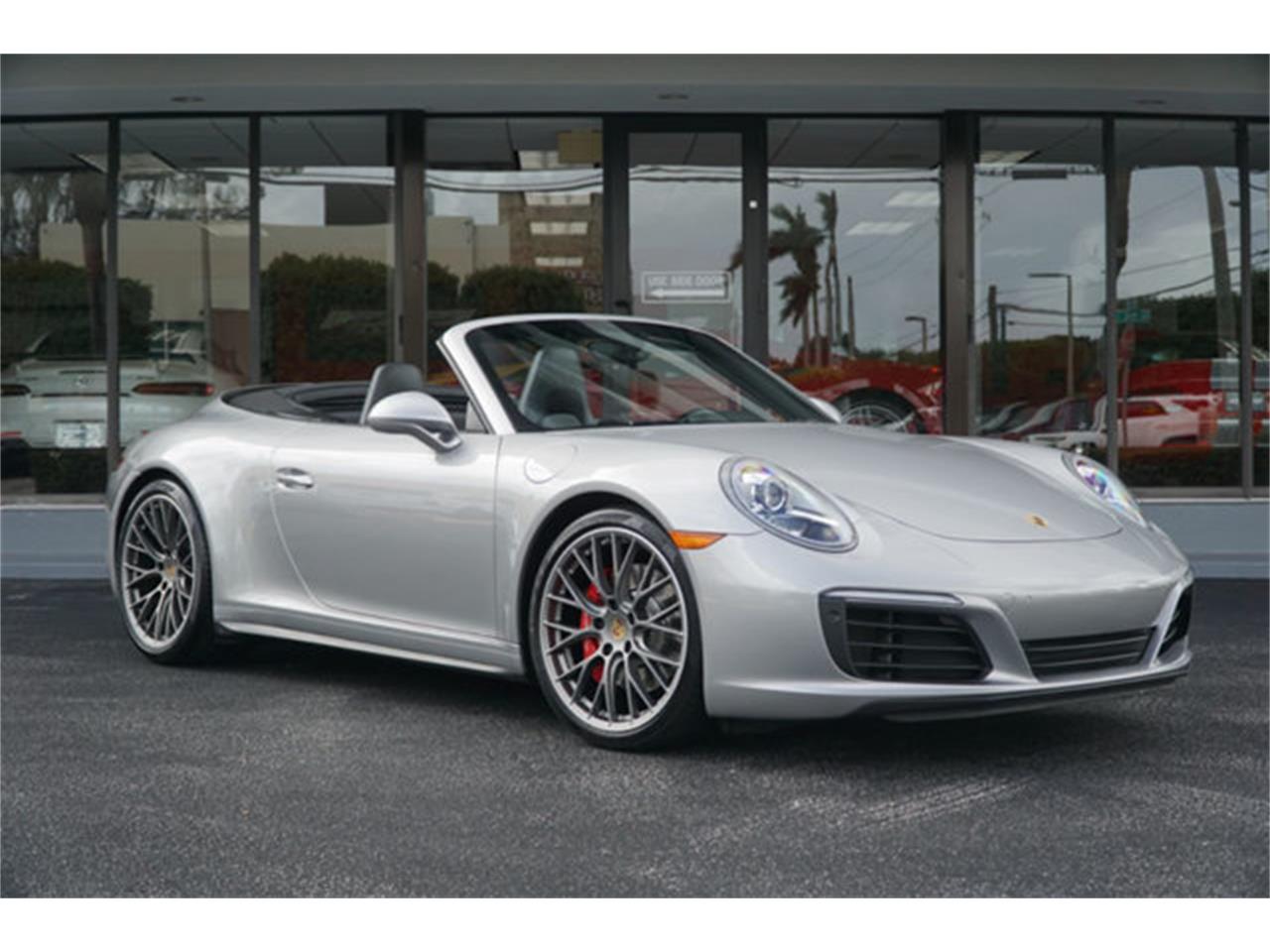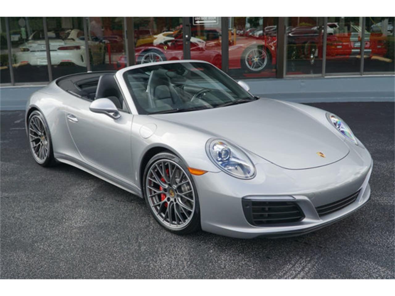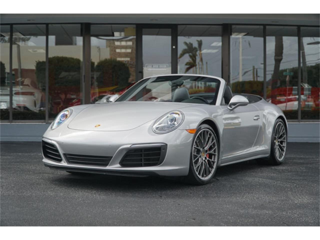 2017 PORSCHE 911 CARRERA 4S CABRIOLET FINISHED IN GT SILVER METALLIC OVER BLACK LEATHER INTERIOR WITH A MATCHING BLACK TOP.