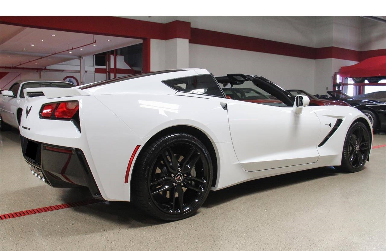 2015 Chevrolet Corvette Stingray Coupe finished in Arctic White over Jet Black, Factory Options: ZF1 Appearance Package (Originally a $1,995 Option) -Body-Colored Full Width Spoiler, -Z51 Style Double 5-Spoke Alloy Wheels, Performance Exhaust System (Originally a $1,195 Option) -Adds 5 Horsepower, Dark Gray Painted Brake Calipers (Originally a $595 Option), Carbon Flash Hood Stripe (Originally a $500 Option), Black Painted Aluminum Wheels (Originally a $495 Option), Carbon Flash Exterior Badge Package (Originally a $100 Option), Vehicle Highlights: 6.