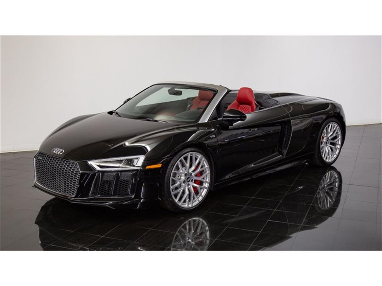 Available at the St. Louis Car Museum is a beautiful, one-owner Audi R8 V10 Spyder with only 782 original miles and is gorgeously finished in Mythos Black Metallic over an Express Red diamond stitch Full Leather interior package, Features include a Carbon Fiber interior and exterior, 20" Wheel package with 10-spoke forged Y-spoke wheels, Red Calipers, and more! Awesome looks, super performance, and unbelievable exhaust note.