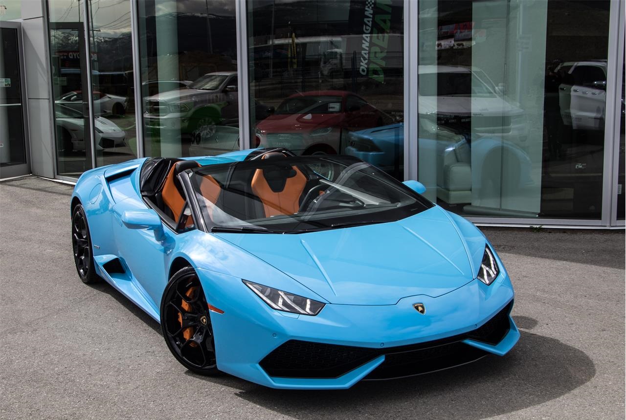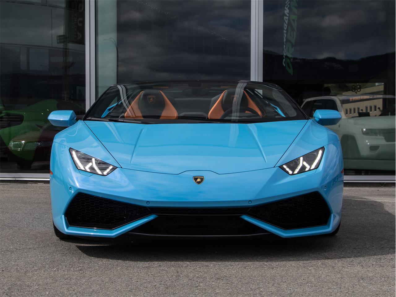 Huracan LP610-4 by Lamborghini, presented in gorgeous Blu Cepheus over Nero Ade and Arancio Leonis Sportivo Bicolor Smooth Leather Seat Trim and perfectly complimented by a Black Soft-Top.