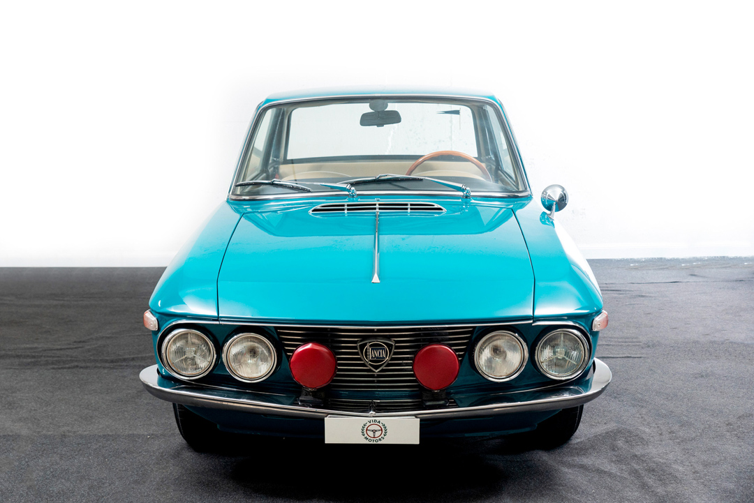 Cream-colored 14″ steel wheels with polished Lancia hubcaps are wrapped in 145-series Michelin tires. The suspension bushings were replaced and the steering box was refurbished in early 2021.