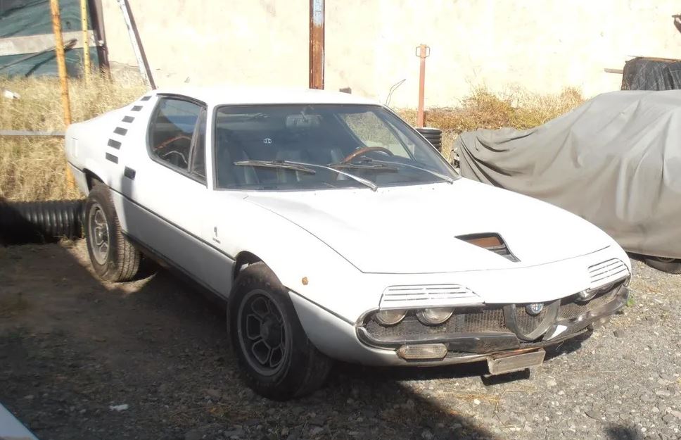 The car was originally finished in an orange metallic color and was repainted in white by the previous owner. It has been in storage for the last three decades, though the glass and trim pieces appear to be mostly intact. An extra windshield, gasket, and a set of exterior badging will be included.