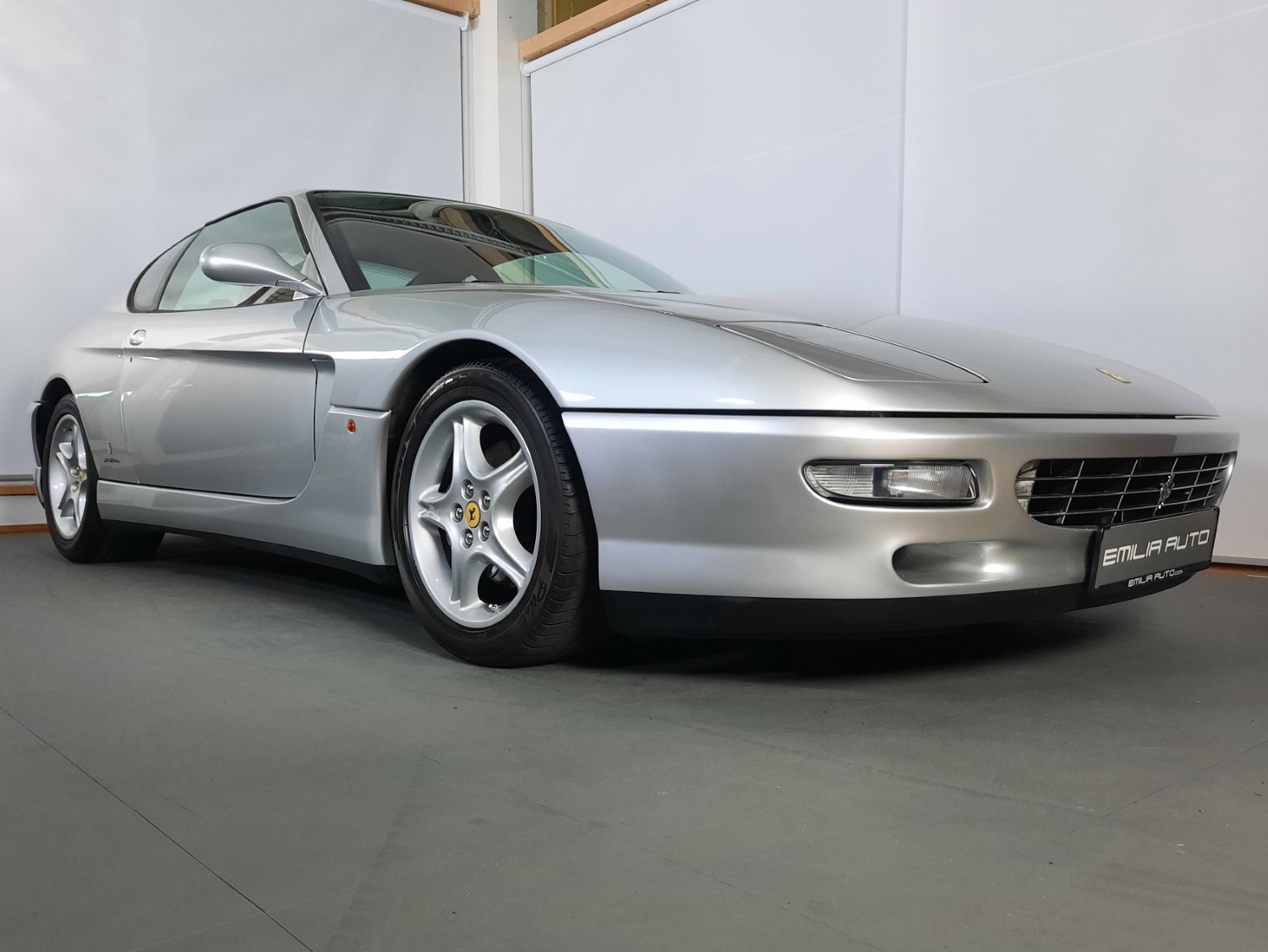 Silver-finished 17” wheels feature Prancing Horse center caps and wear older 255/45 Michelin Pilot SX front and 285/40 Bridgestone Expedia S.01 rear tires. Stopping power is provided by four-wheel disc brakes with black Ferrari-branded calipers.