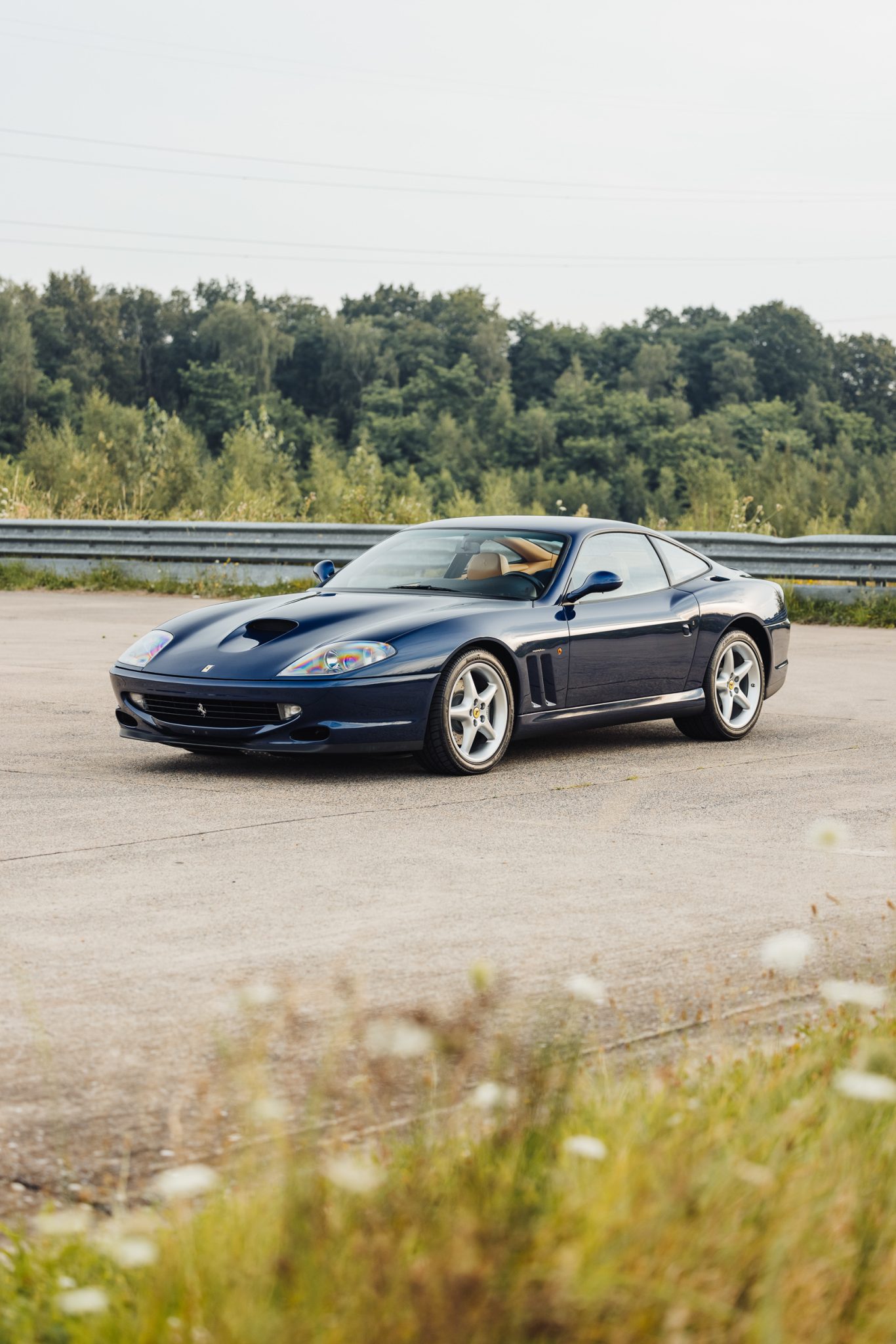 The 18″ five-spoke alloy wheels were mounted with 255/40 front and 295/35 rear Pirelli P-Zero Rosso tires in 2022. Braking is handled by black-finished Ferrari-branded calipers over a cross-drilled and ventilated rotor at each corner. The front brake hoses were replaced in May 2023.