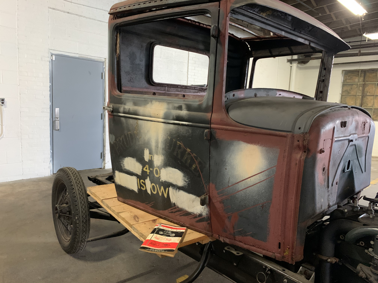 Black-painted 19” wire wheels are mounted to the chassis, which features a leaf spring suspension. A spare wheel is included.