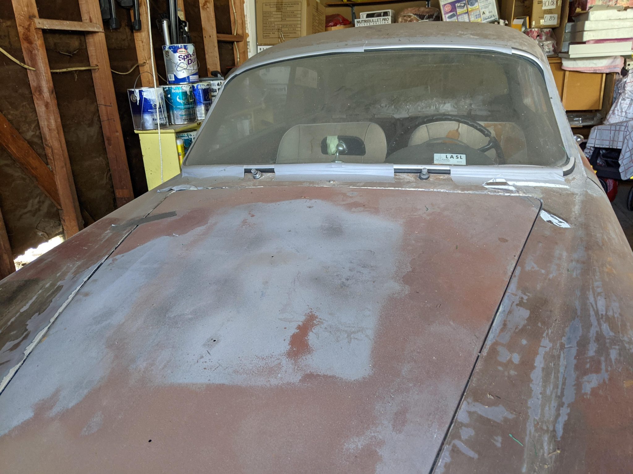 Fergat and Borrani wheels have been refinished and are fitted with 15″ Vredestein tires said to have 2008 production codes. The seller states that the rear axles and hubs were refurbished.