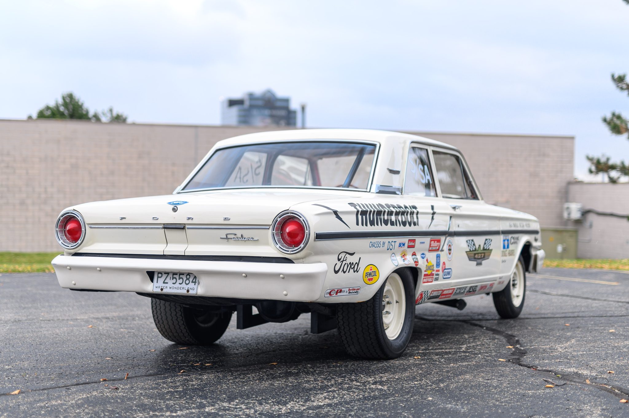 The 15″ body-color steel wheels are fitted with older Micky Thomson Sportsman Pro tires out back. Stopping power is provided by front disc and rear drum brakes. The selling dealer notes that Thunderbolt-style sub-frame connectors are installed.