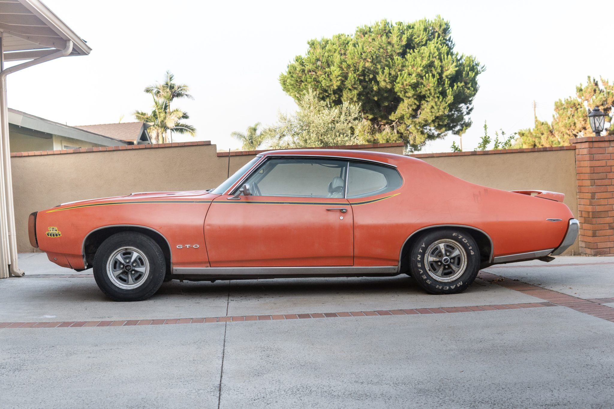 The 14″ Rally II wheels are mounted with mismatched tires. The front wheels are missing center caps, and all four hubs have missing lug nuts. The car features power steering, and braking is handled by power-assisted front discs and rear drums.