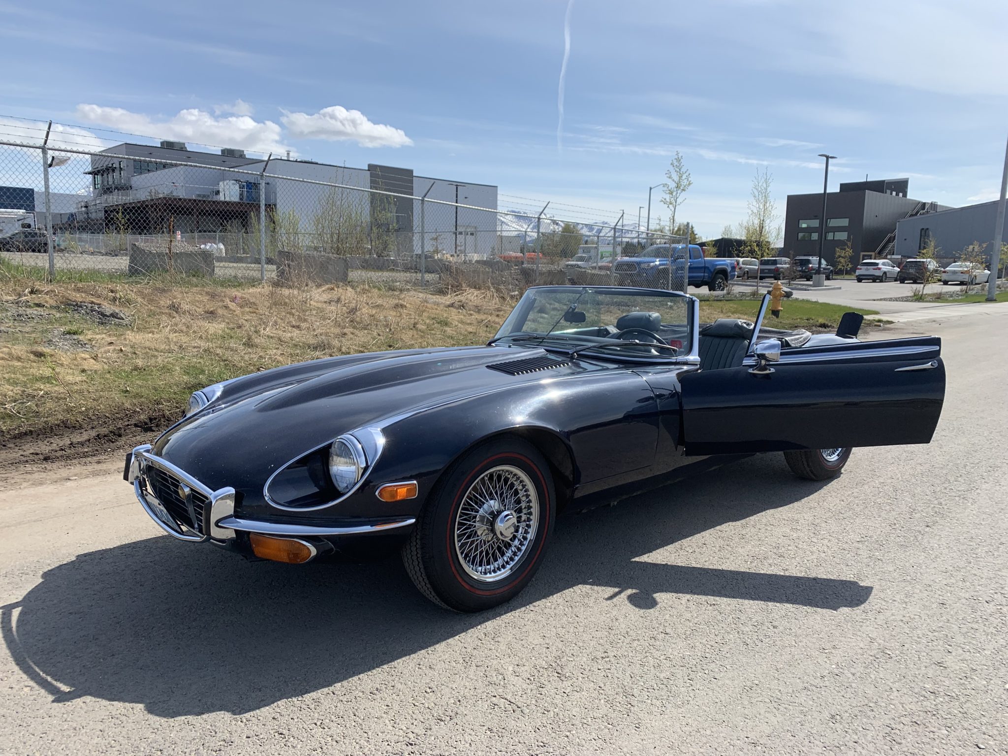 The 15″ wire-spoke wheels are secured with knock-off spinners and are mounted with 185-series Michelin X Radial redline tires. The Series III E-Type was factory equipped with power steering, and stopping power is provided by four-wheel disc brakes with inboard-mounted rear rotors.