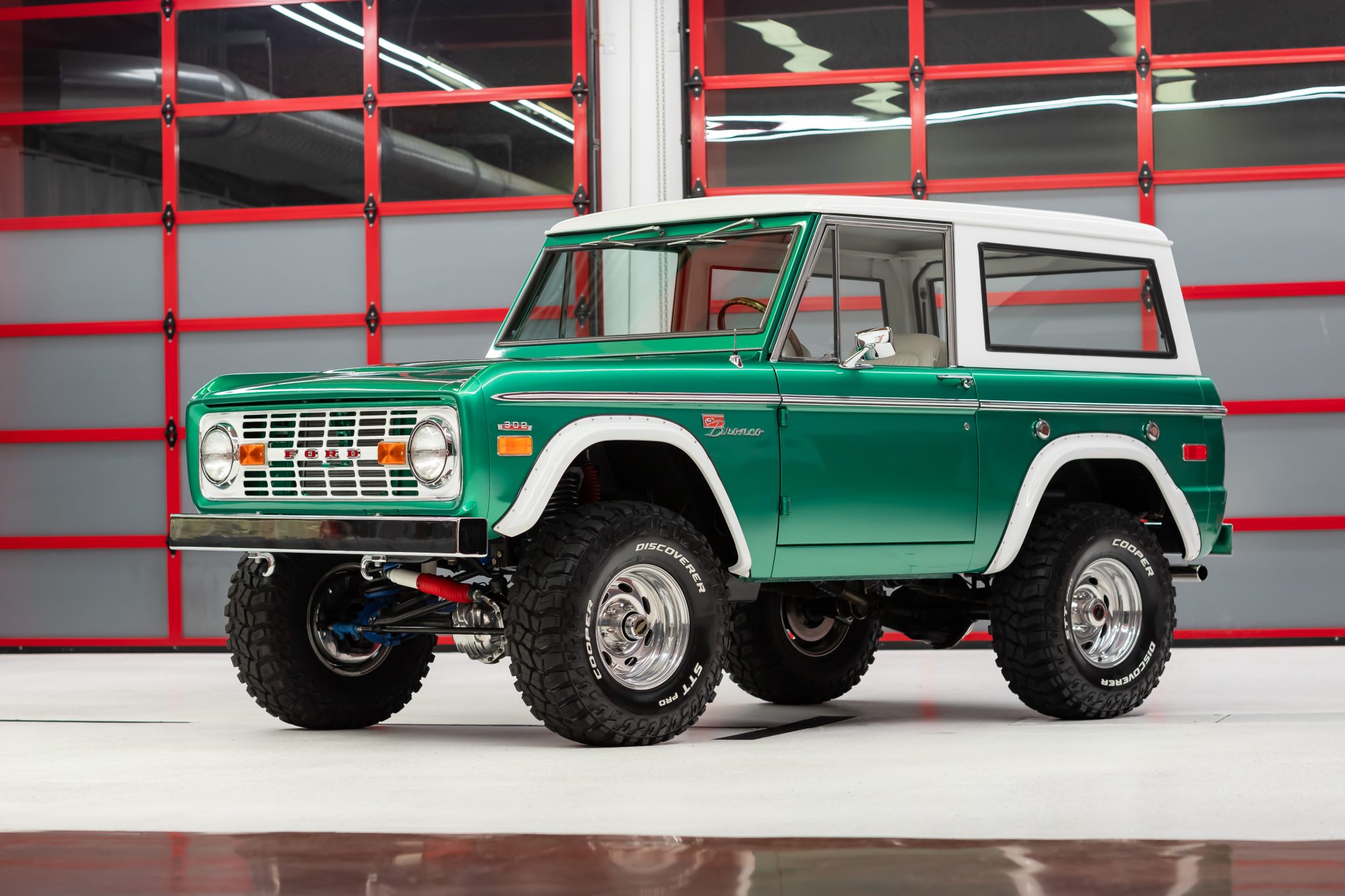 Weld Racing 15″ wheels are wrapped in 33X12.5″ Cooper Discoverer STT Pro tires that were installed in 2021. The suspension has been lifted, and disc brakes and manually locking front hubs are equipped. Service in 2019 involved replacing the brake master cylinder, booster, and proportioning valve kit, while the radius arm bushings were replaced in preparation for the sale. The selling dealer reports that the brakes stick and that there is a chirp from the power steering on hard lock. A service record shown in the gallery below indicates that the steering shaft needs to be rotated at the steering box.