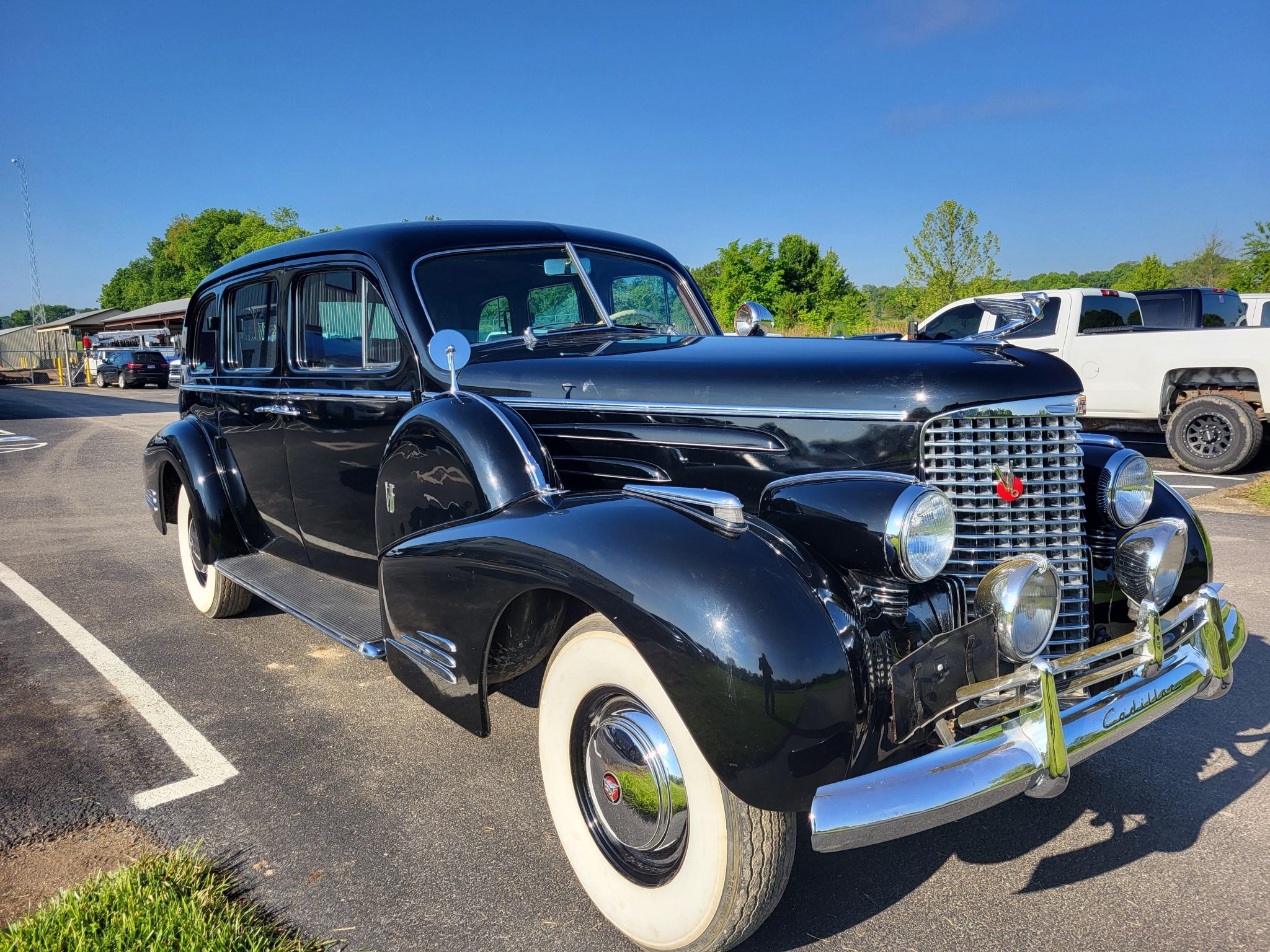 This example’s Imperial Sedan coachwork is finished in black, and closeups of the finish, trim, and lenses can be viewed in the photo gallery below. Styling includes four doors that latch at the B-pillars, chrome fender spears, horizontal louvers alongside the engine compartment, a “flying goddess” hood ornament that serves as a latch, Trippe front driving lights, a cowl lamp, and a trunk handle integrated with the rear license plate bracket.