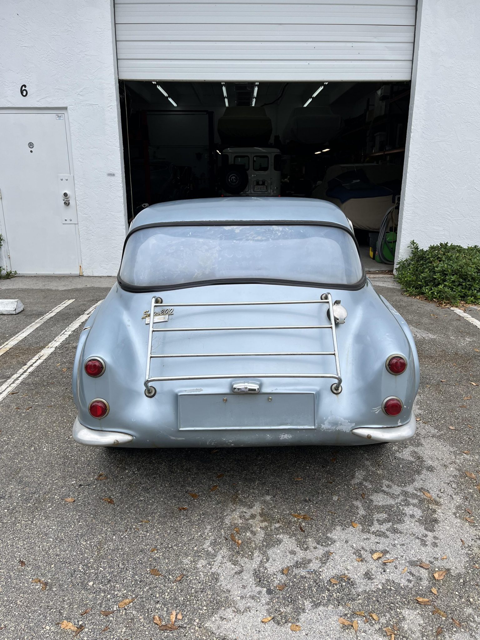 The 15″ painted wire wheels are secured with two-eared knock-off hubs, and they are mounted with Hercules radial tires that were reportedly installed in the 1970s. A spare wheel is stowed under a cover in the rear cargo area. The front brake calipers were overhauled during the seller’s ownership along with rebuilds of the master cylinders and rear wheel cylinders. The emergency brake cables are frozen, and corrosion is present on the wheels.