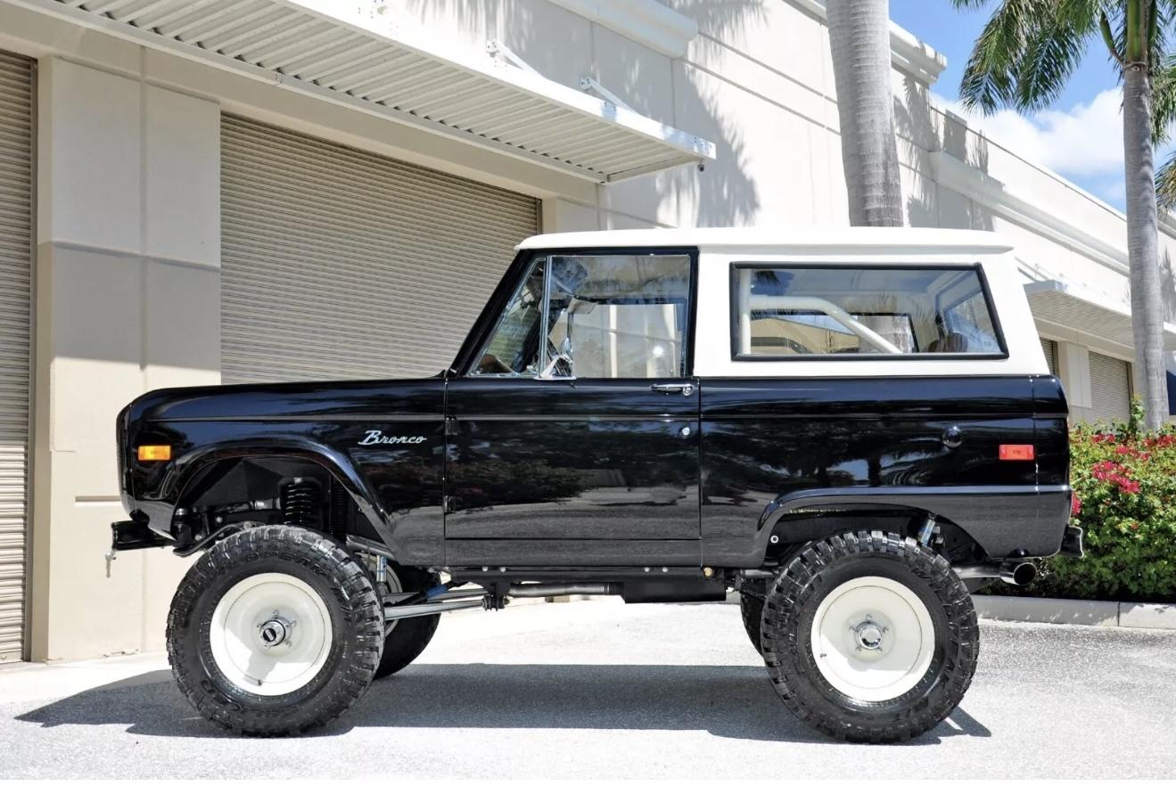 White-finished 17″ steel wheels are wrapped in 285/70 Falken Wildpeak M/T tires. The truck is equipped with manually locking front hubs and power steering, and stopping power is provided by Wilwood four-wheel disc brakes with Hydroboost. The suspension and body have been lifted, and Bilstein shocks and Hellwig sway bars have been installed.