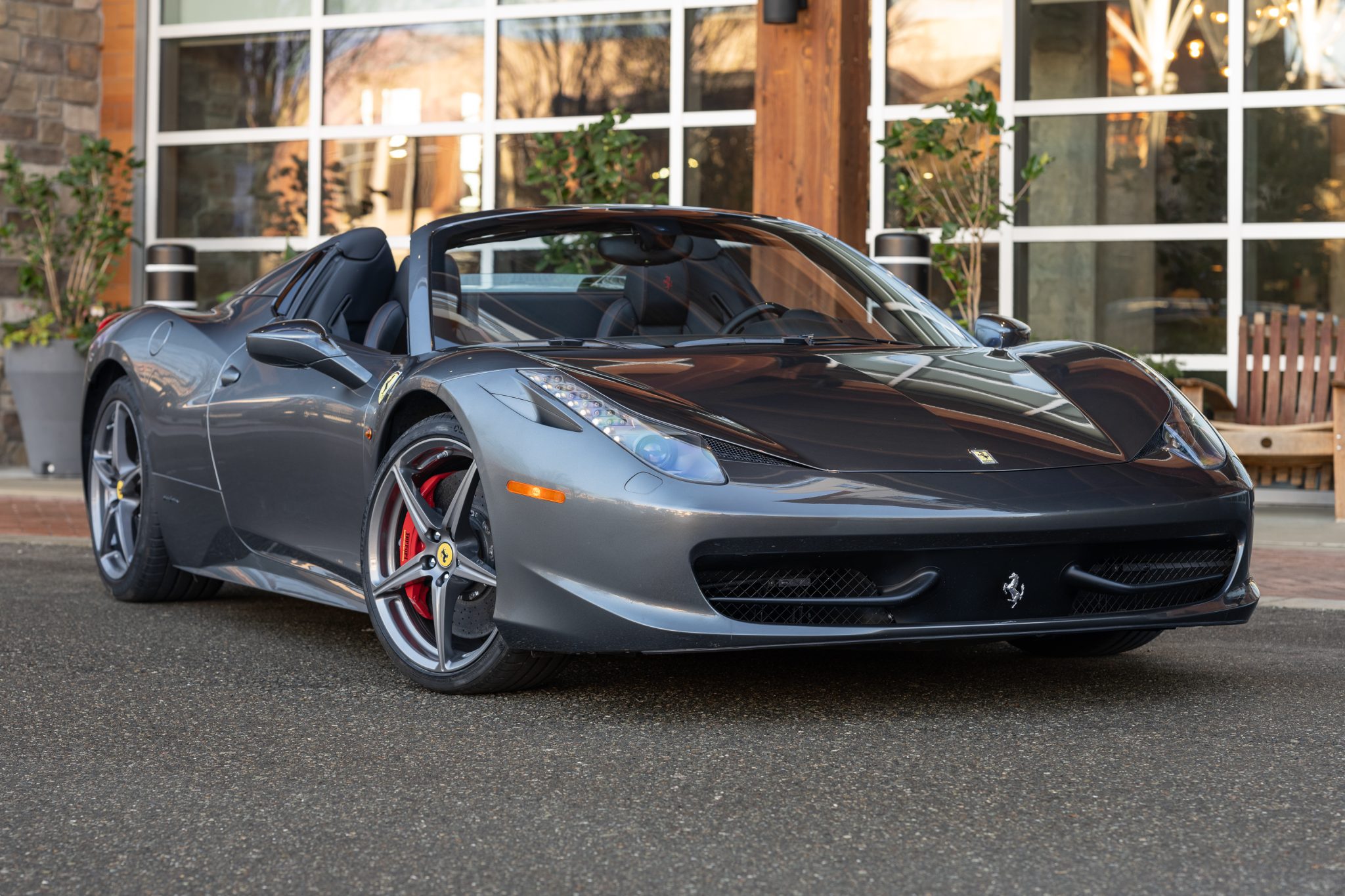 The 20″ five-spoke alloy wheels are finished in Graphite and wear Michelin tires that were mounted in February 2024. The car is equipped with magnetorheological dampers and a suspension lift system, and braking is handled by red-finished Ferrari calipers over cross-drilled carbon-ceramic rotors at all four corners.