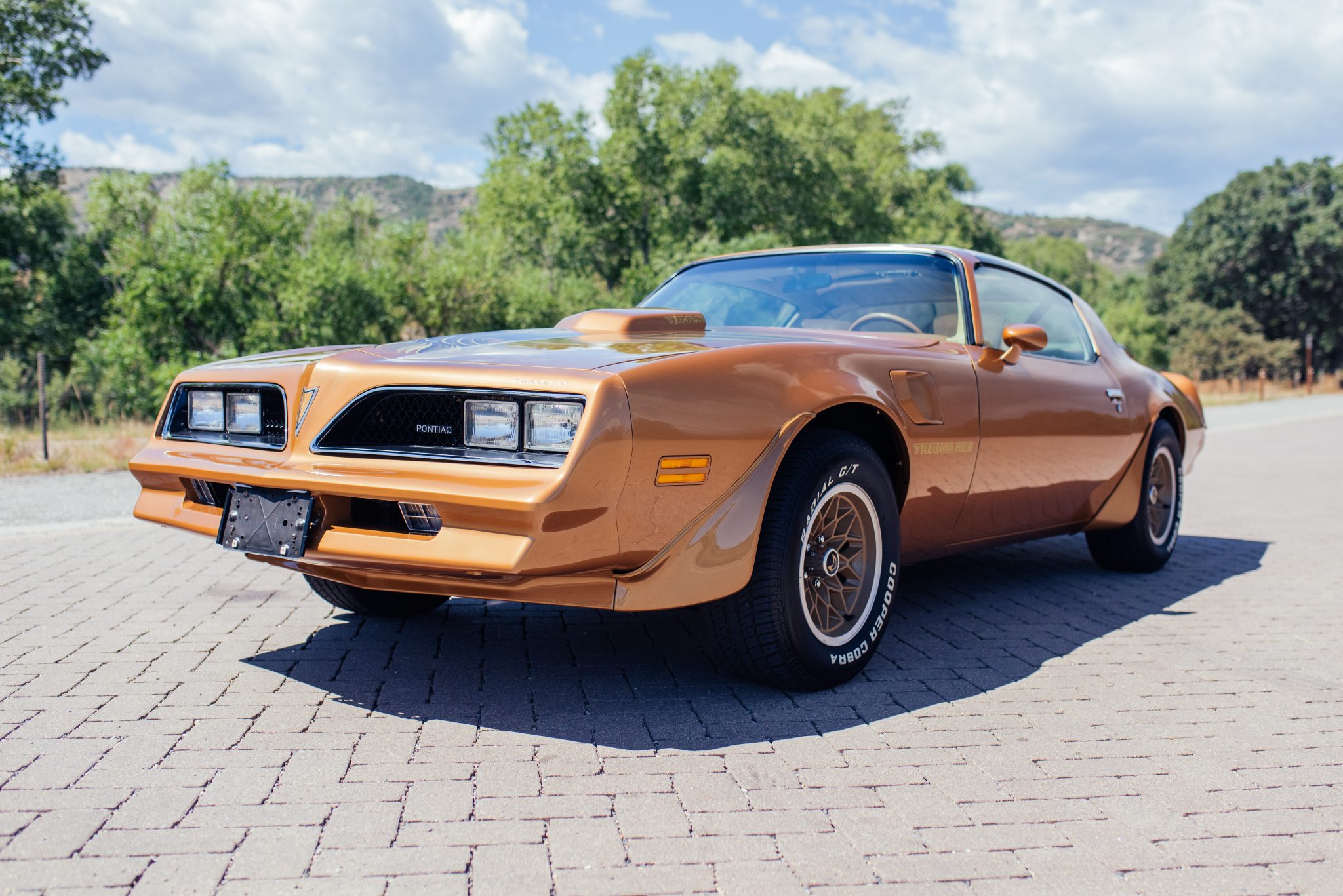 Snowflake 15″ wheels with gold-finished centers wear 255/60 Cooper Cobra Radial G/T tires. Stopping power is provided by disc brakes on all four corners, and the car was factory-equipped with the Special Handling Package. The seller reports that the front suspension was refurbished and fitted with urethane bushings and various suspension components were powder-coated.