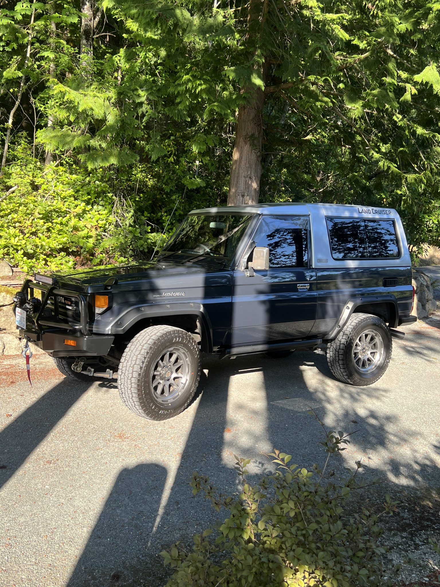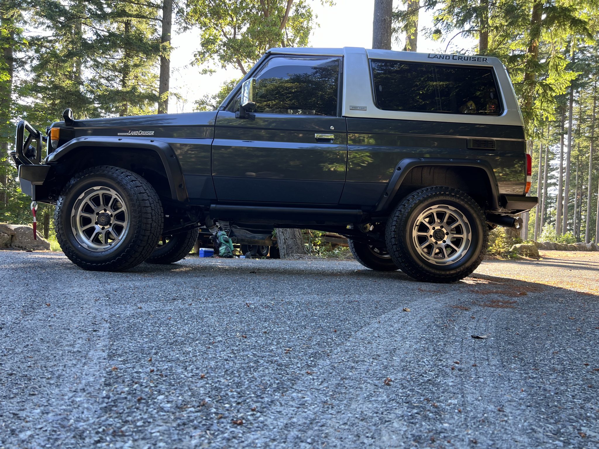 Aftermarket 18″ wheels are mounted with 285/65 Mazama Open Range All-Terrain tires, and a matching spare is secured to the tailgate. A 2″ Old Man Emu suspension lift was installed under current ownership in addition to replacement wheel hubs. The steering knuckles were rebuilt. Stopping power is provided by disc brakes on all four corners.