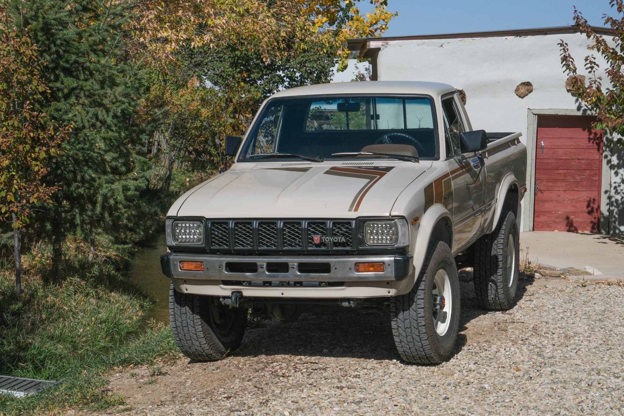 White 15″ steel wheels were mounted with 31×10.5″ Yokohama Geolandar A/T G015 tires in April 2024. The truck is equipped with manually locking front hubs and a 3″ suspension lift. Braking is handled by front discs and rear drums.