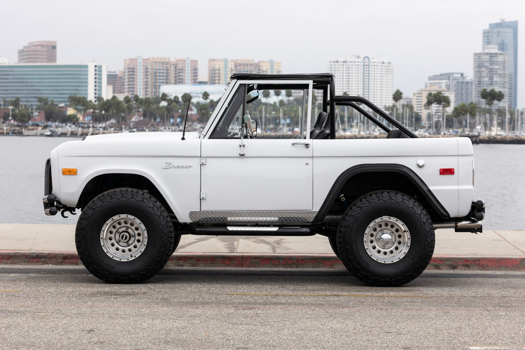Eagle Alloys 15″ beadlock-style wheels are wrapped in 35×12.5″ BFGoodrich All-Terrain T/A KO2 tires. The truck is equipped with Warn manually locking front hubs in addition to front disc brakes and a rear disc brake conversion kit with an electronic parking brake. The suspension has been lifted, and it is equipped with James Duff Inc. shock absorbers.