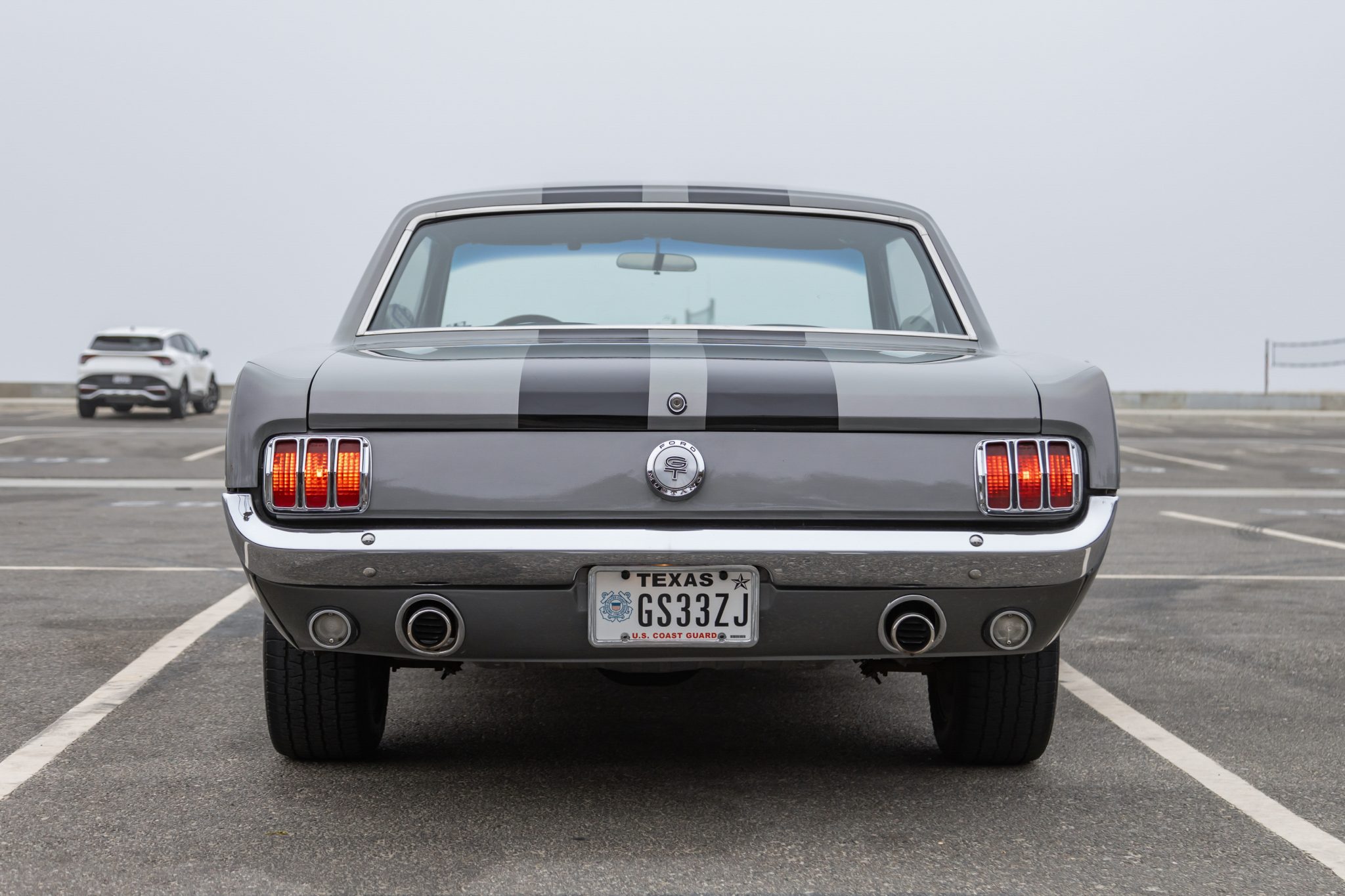 Vision American Muscle Legend Series 15” wheels are mounted with 205/60 BFGoodrich Radial T/A tires. The car is equipped with power-assisted steering and has been fitted with aftermarket leaf springs, an Eibach front sway bar, and Wildwood front brake calipers.