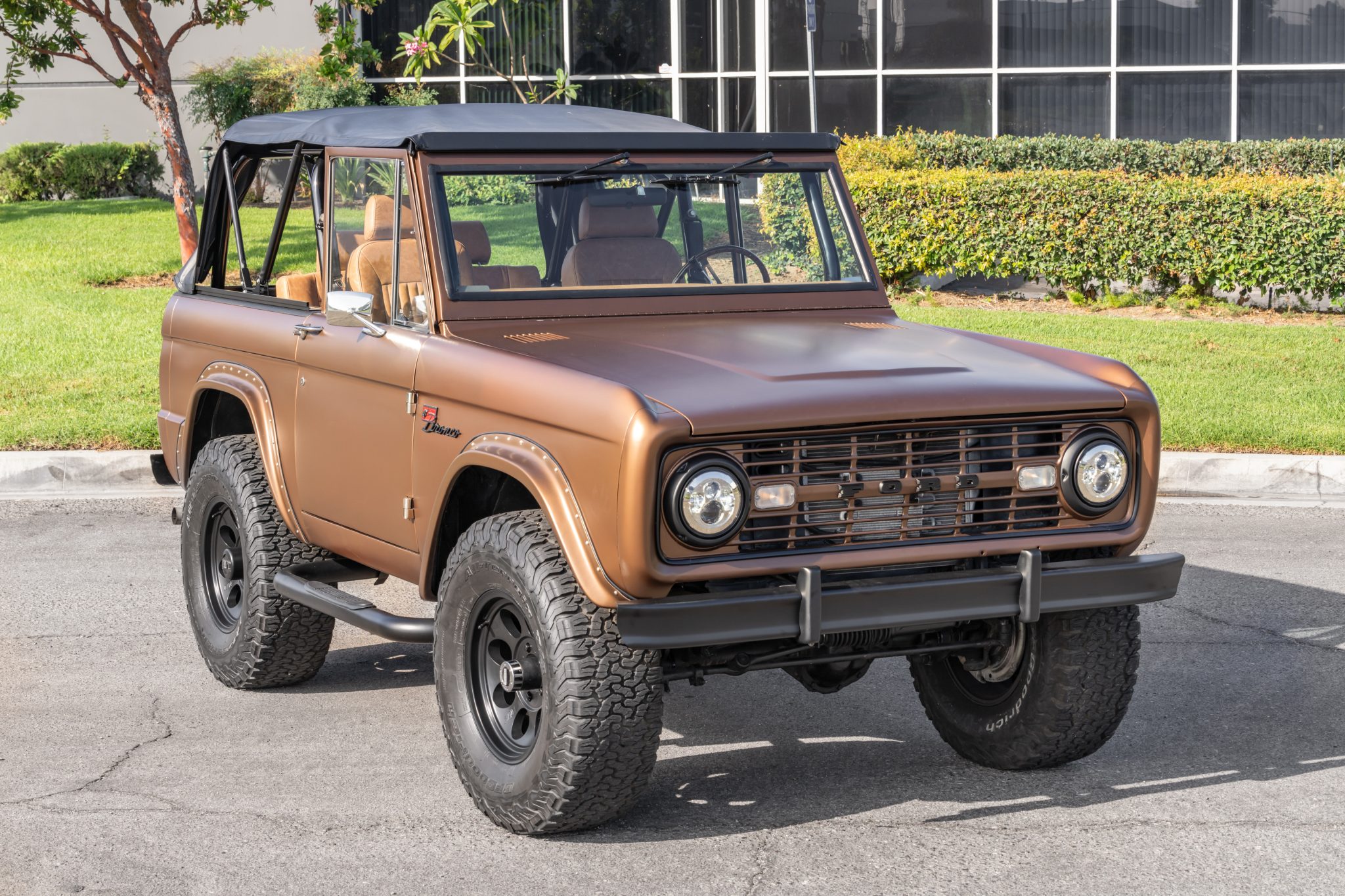 The 17″ Mickey Thompson wheels are wrapped in 35″ BFGoodrich All Terrain T/A tires. The truck is equipped with Warn manually locking front hubs and power steering, and stopping power is provided by front discs and rear drums with a Wilwood master cylinder. A 2.5″ Wild Horses suspension lift has been installed.