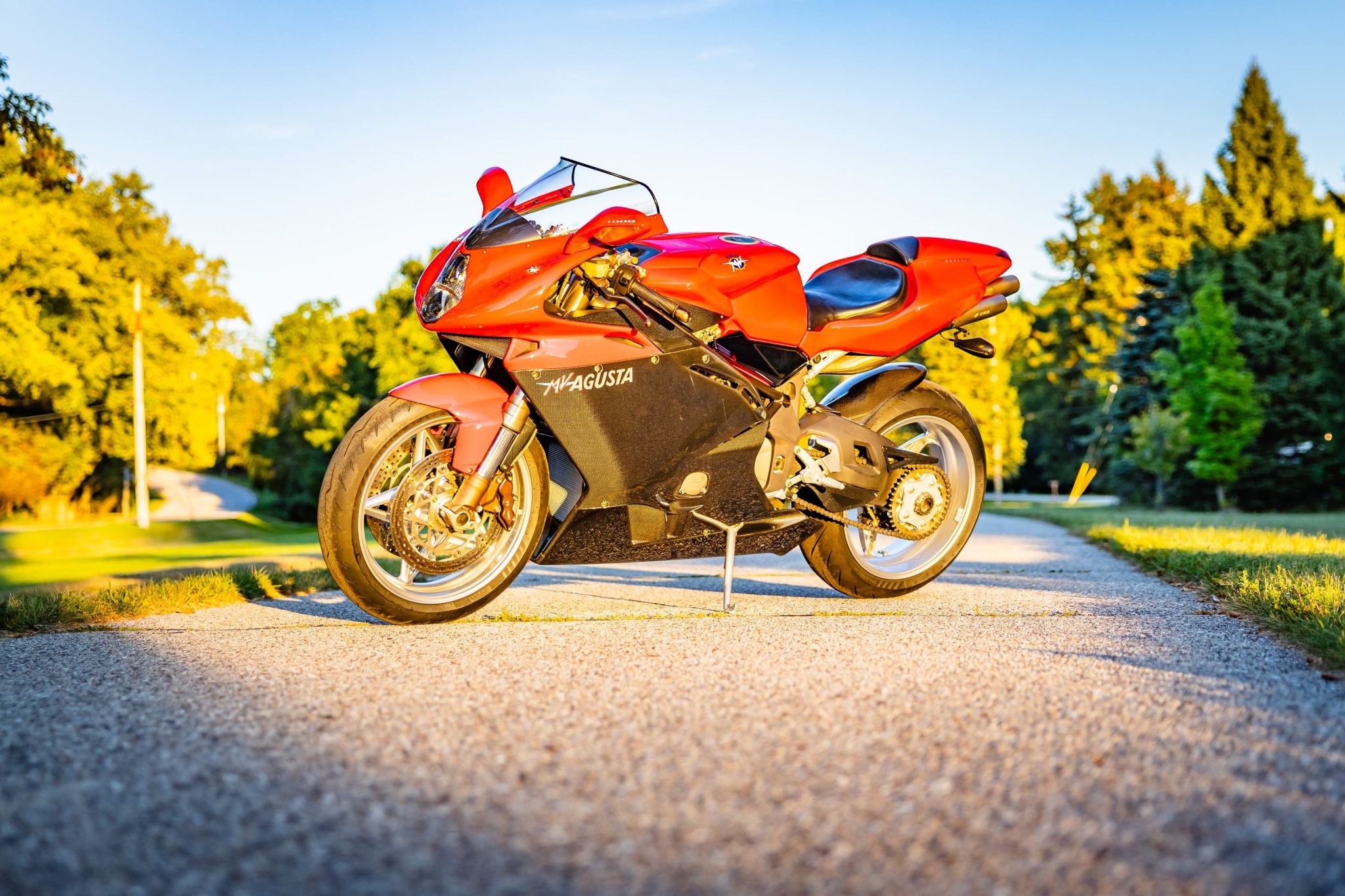 The 17″ five-spoke alloy wheels are finished in silver and were mounted with Pirelli Diablo Rosso IV tires in 2023. Braking is handled by a pair of drilled rotors and F4-branded Nissin calipers up front along with a single caliper and drilled rotor out back. The brake fluid was flushed in 2023. Adjustable suspension consists of an inverted fork in addition to a Sachs piggyback monoshock attached to the single-sided swingarm via a linkage.