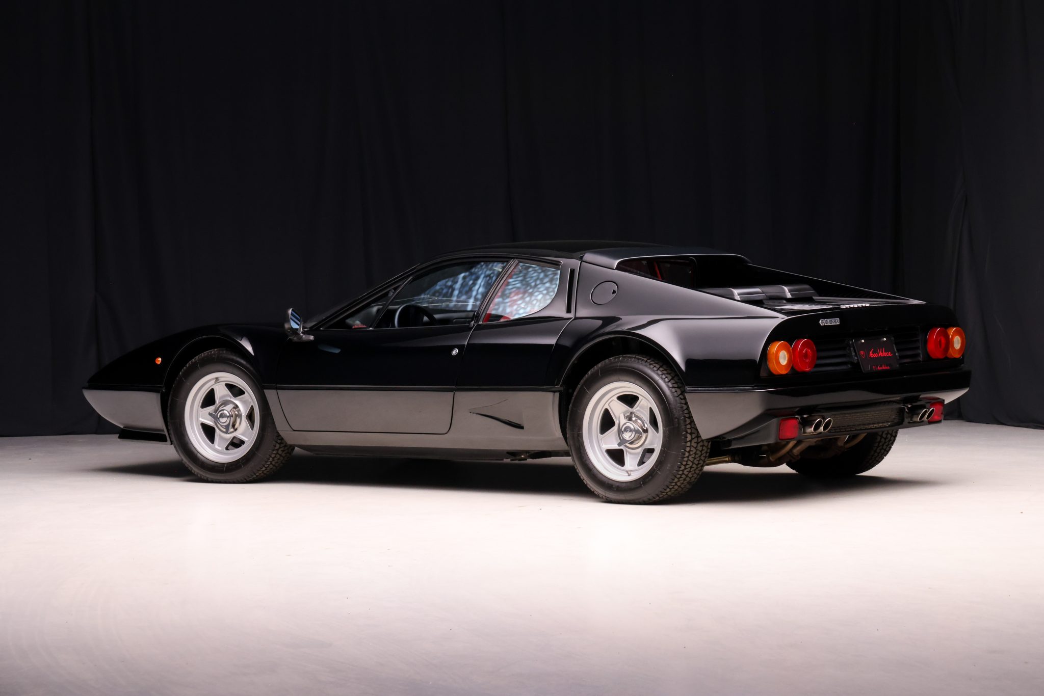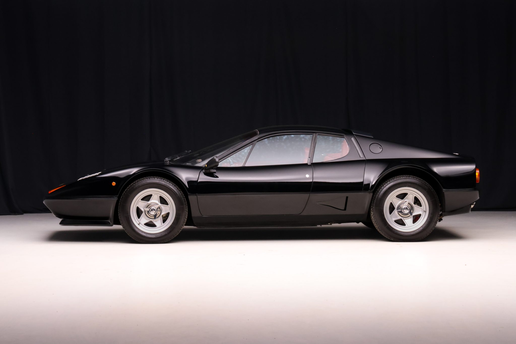 This example was completed onĀ November 22, 1982, andĀ is finished in Nero Ferrari. It features pop-up headlights, fog lights, a front spoiler, NACA side ducts, and quad exhaust outlets. Close-up photographs of the exterior finish and trim are shown in the gallery below along with photographs of paint-meter readings.