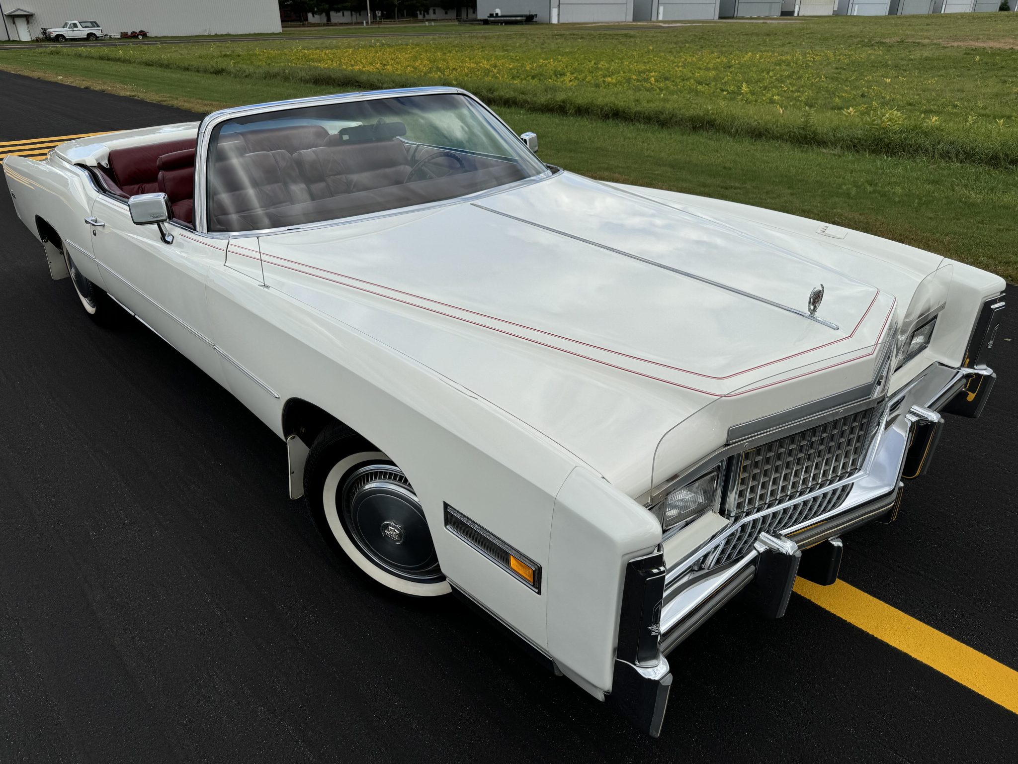 The 15″ steel wheels have bright covers and are mounted with 235/75 SureTrac Power Touring whitewall tires. The Eldorado featured a torsion bar front suspension and a coil-sprung solid rear axle along with Automatic Level Control, power brakes, and power steering. The front brake calipers and hoses were replaced in 2021.