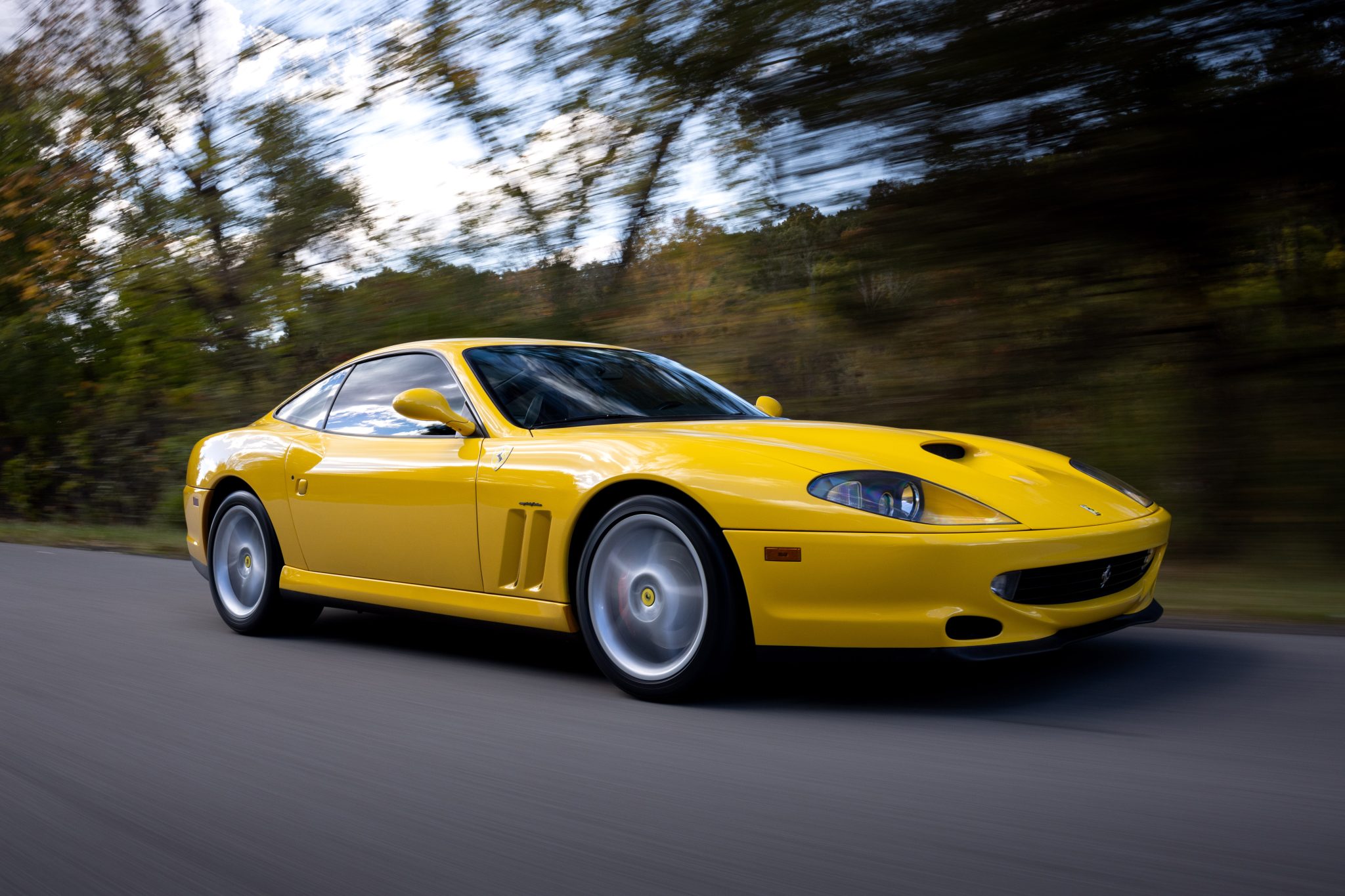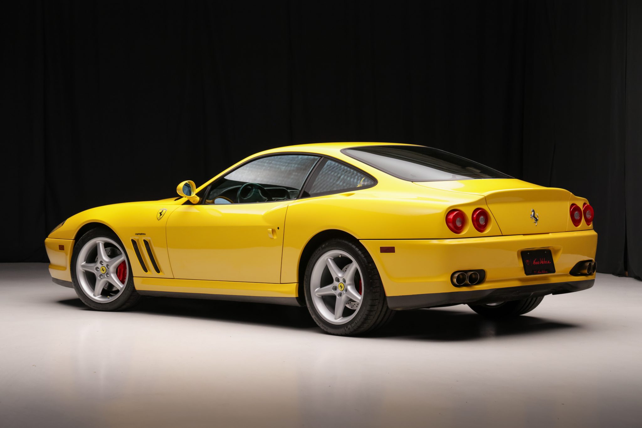 The 18″ five-spoke alloy wheels are mounted with Michelin Pilot Super Sport tires, which show date codes from 2023 and 2024. Braking is handled by red-finished Ferrari-branded calipers over cross-drilled and ventilated rotors at all four corners.