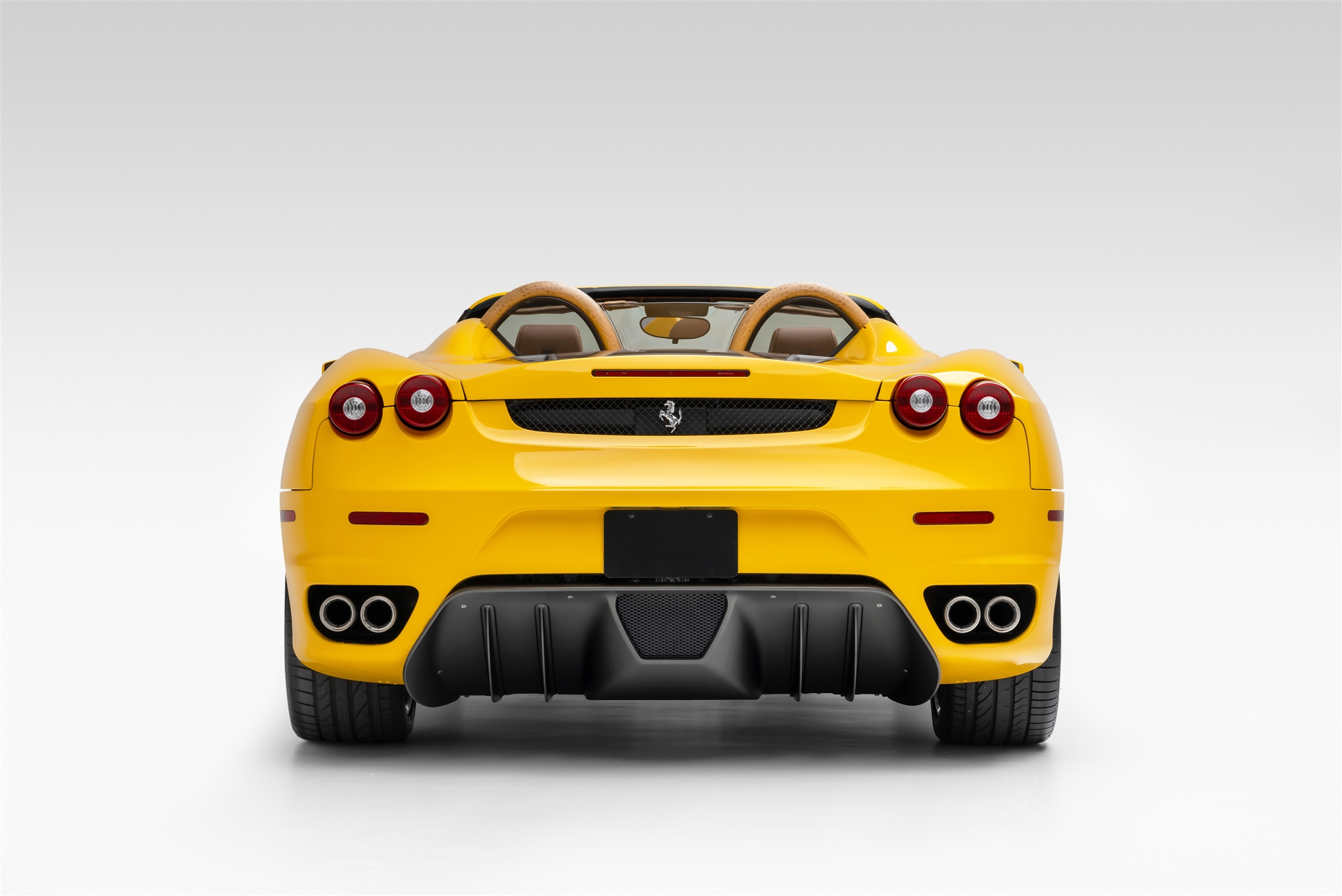 The 19″ split-spoke alloy wheels are mounted with Bridgestone Potenza tires. Braking is handled by yellow-finished brake calipers fitted over Brembo carbon-ceramic rotors.