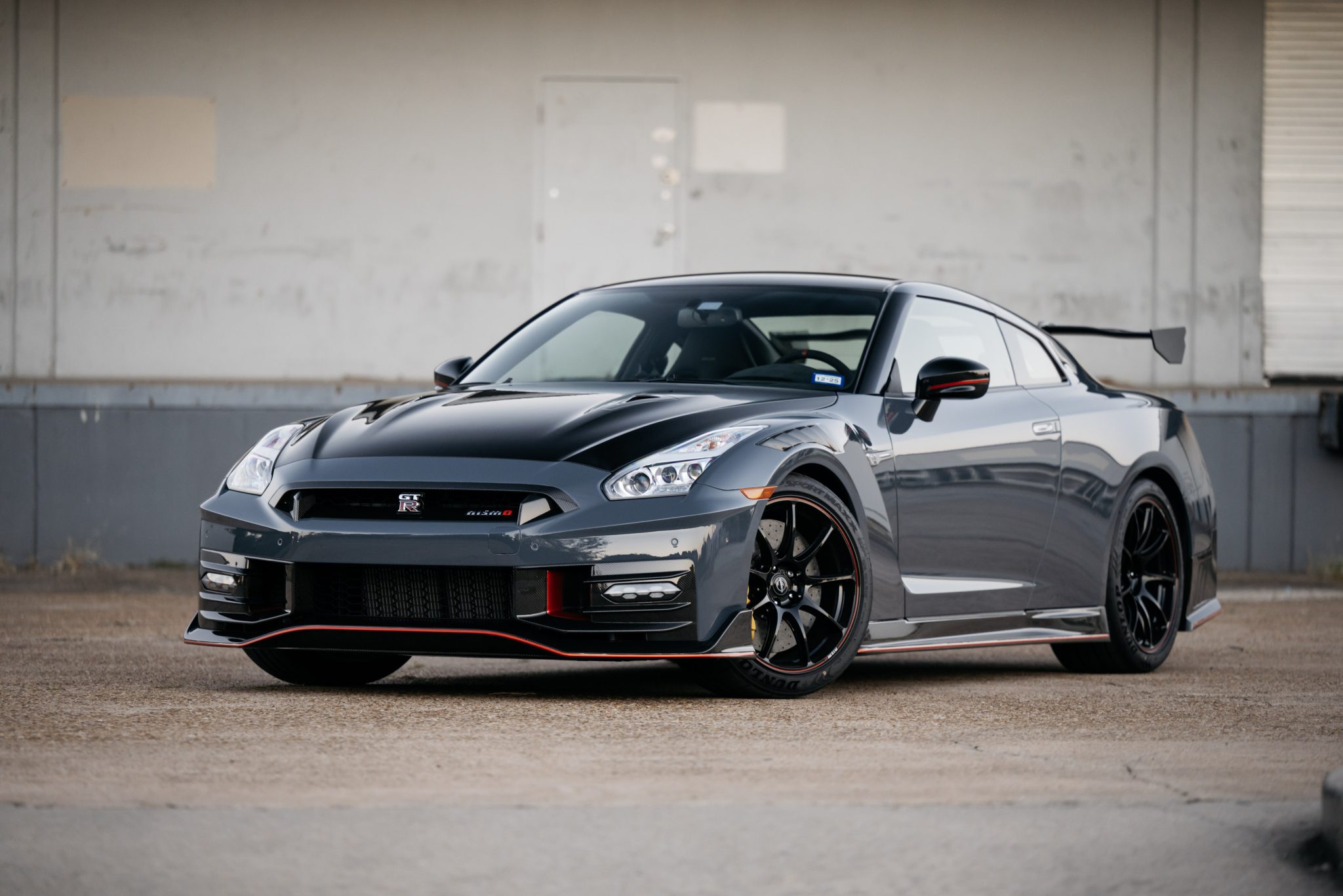 Gloss-black RAYS 20″ forged alloy wheels are mounted with 255/40 front and 285/35 rear Dunlop SP Sport Maxx GT 600 DSST tires. The NISMO-tuned Bilstein DampTronic suspension system has three driver-selectable modes. Braking is provided by yellow-finished Brembo calipers mounted over cross-drilled carbon-ceramic rotors, and the system features electronic brake-force distribution (EBD).