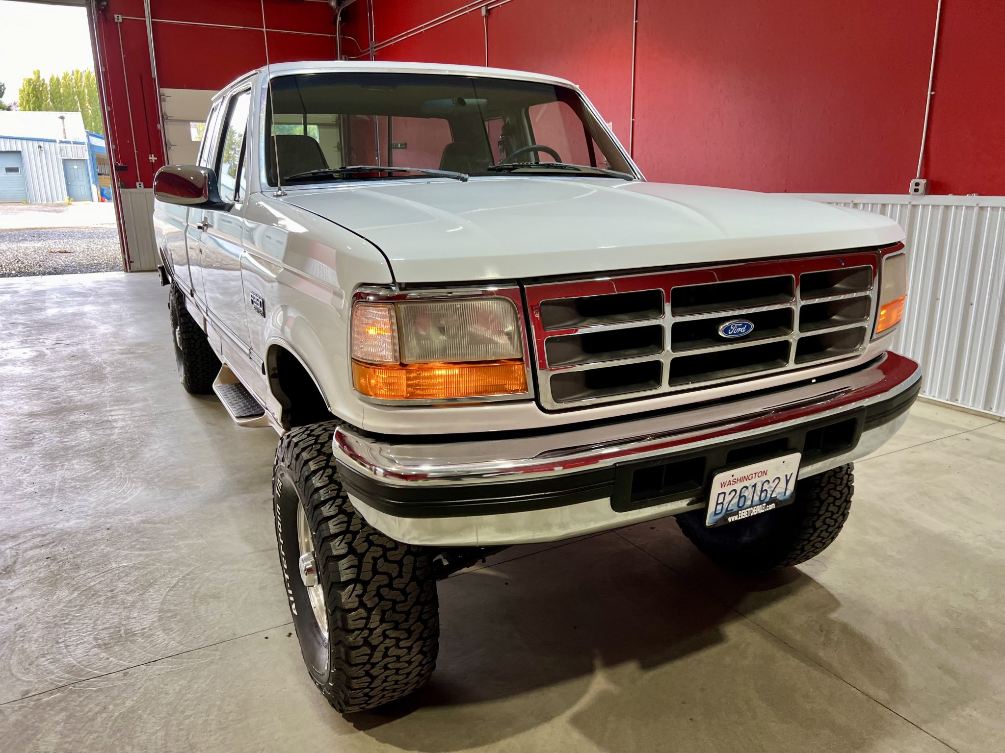 The 16″ eight-hole alloy wheels are mounted with 315/75 BFGoodrich All-Terrain T/A white-letter tires. Braking is handled by power-assisted front discs and rear drums, with the latter featuring ABS. Work under current ownership consisted of installing four tires, fitting a 4″ suspension lift, and performing a wheel alignment.